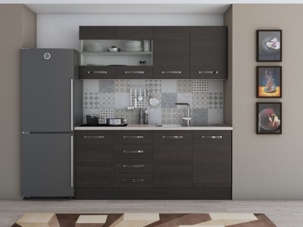 Bucatarie Alfabet cu corp vitrina, 180 cm, Wenge