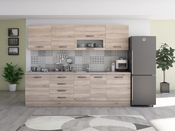 Bucatarie Alfabet cu corp vitrina, 260 cm, Sonoma