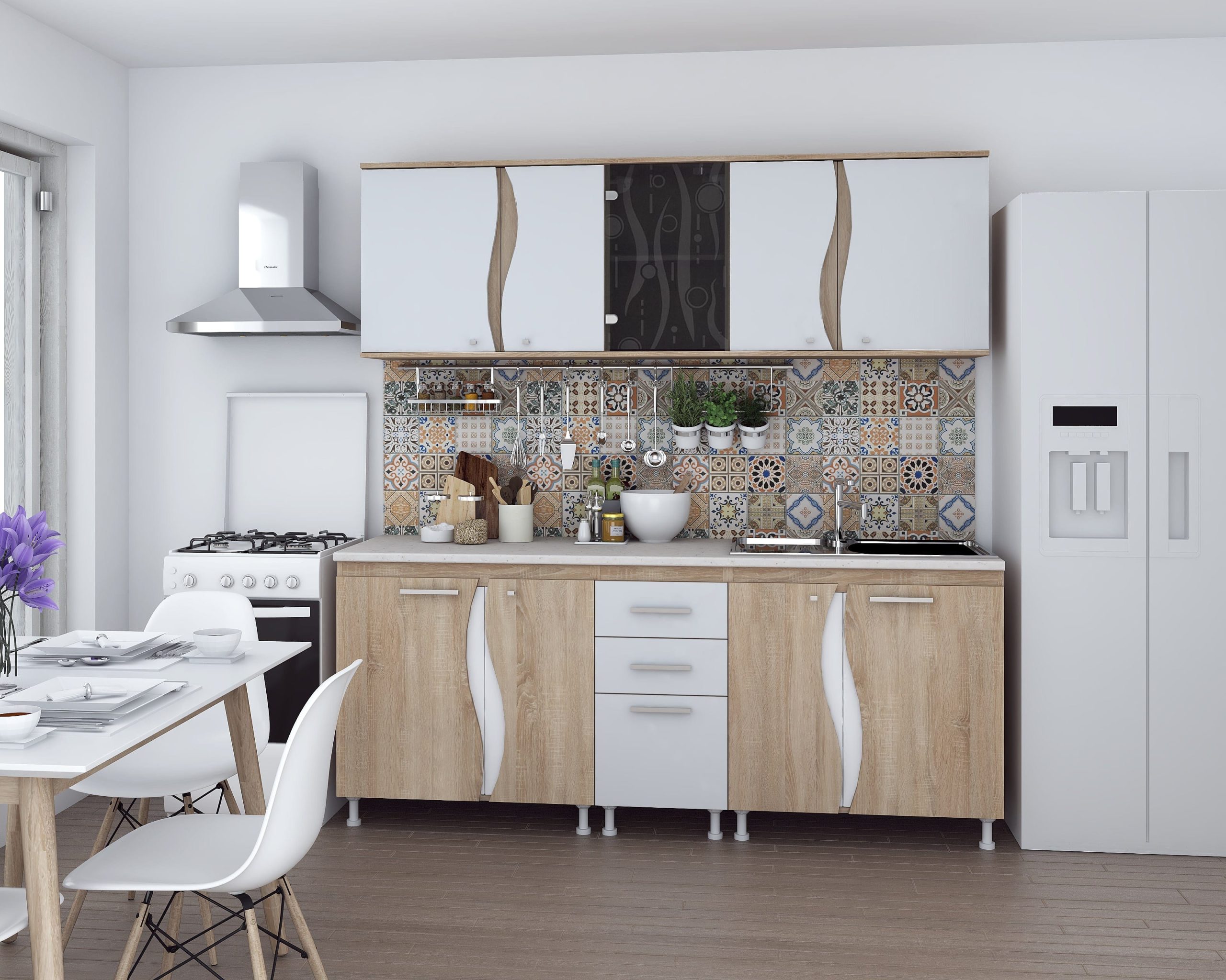 Bucatarie Kali 3S, 200 cm, Sonoma/Alb