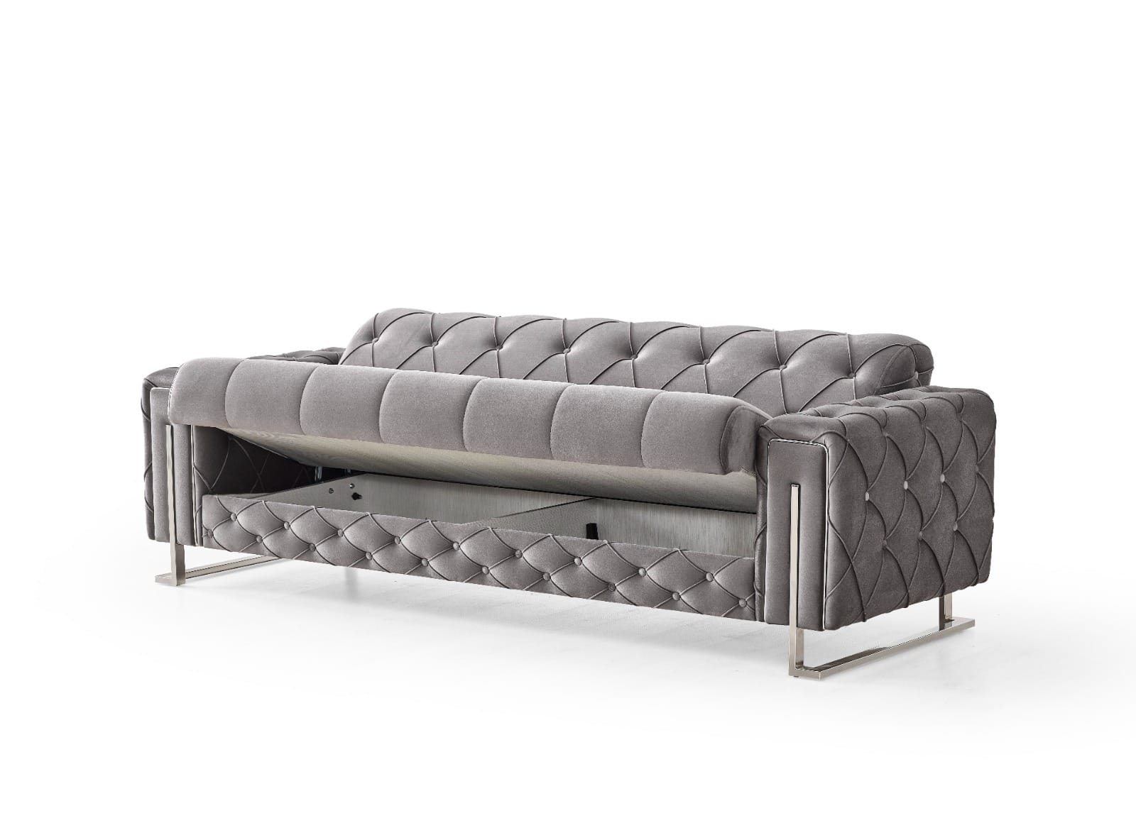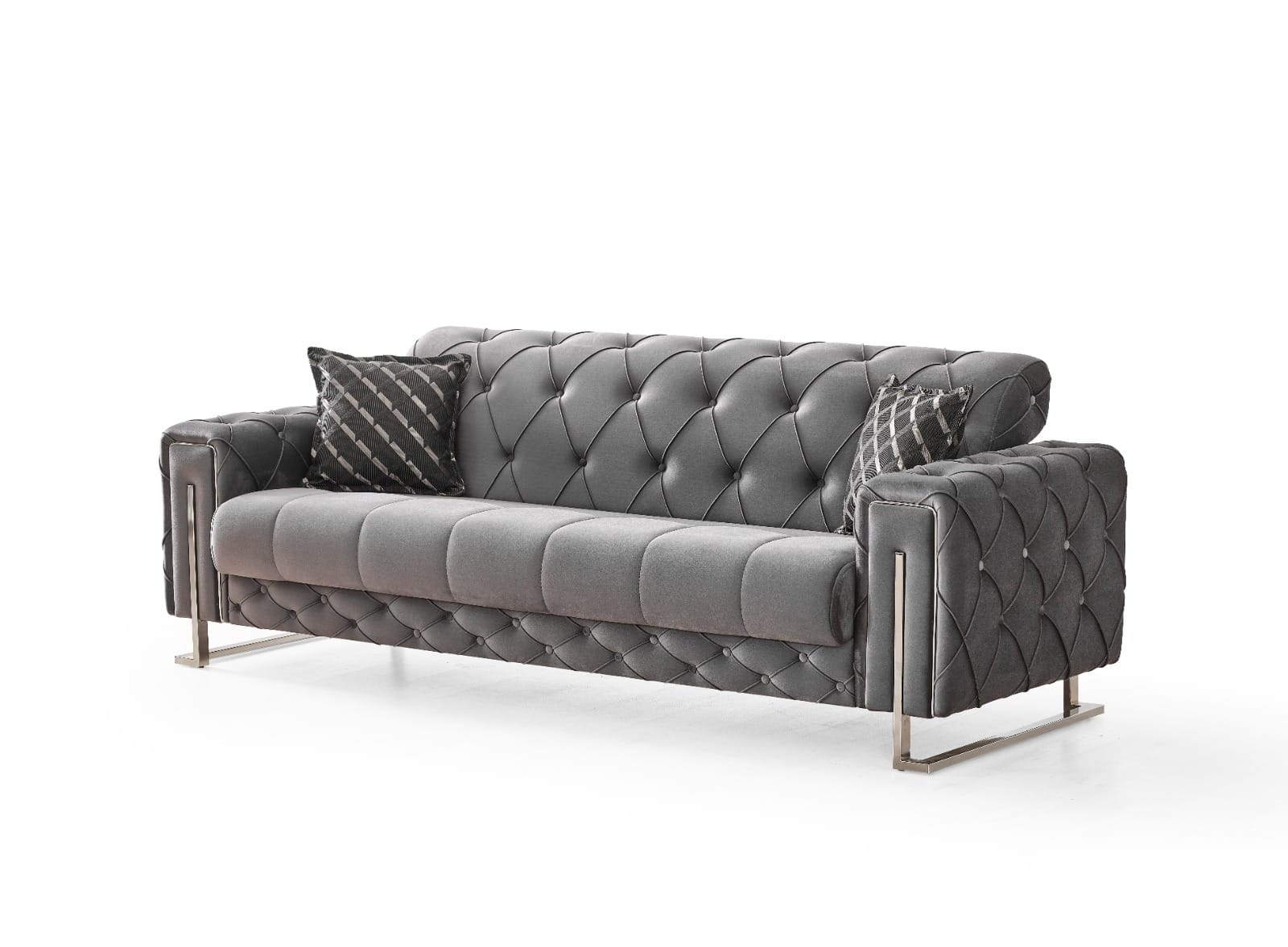 Canapeaua extensibila Punta este solutia perfecta pentru amenajarea unui living elegant datorita liniei de design inspirata de stilului chester armonizata cu tendintele contemporane in materie de design si amenajari. Combinatia perfecta dintre forma si structura bratelor, butonii si cusaturile decorative, materialele de tapiterie de lux, picioarele si culoarea speciala asigura integritatea unui mobilier superb pe o linie masiva si deosebita.