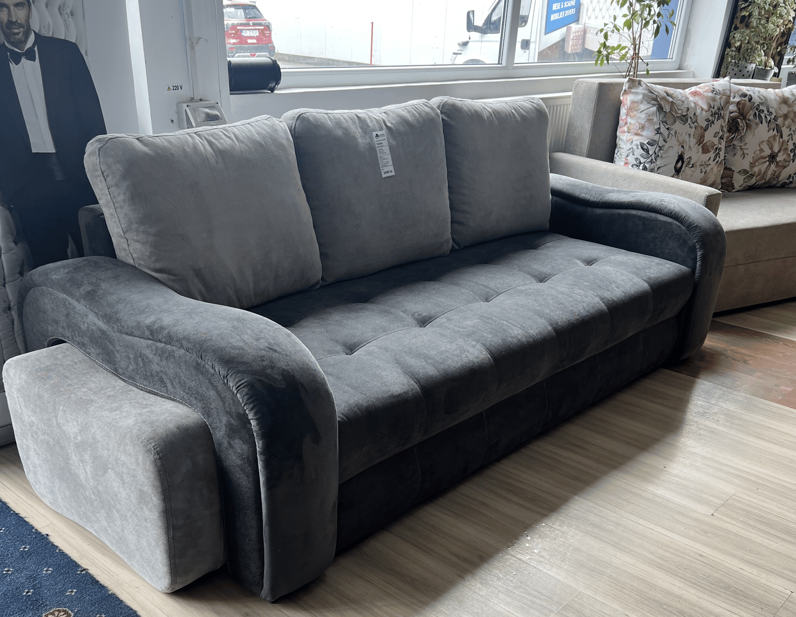 - Structura canapelei este din lemn masiv si pal, arcuri sinusoidale rezistente si spuma poliuretanica de 10 cm in straturi de diferite densitati, inclusiv HR