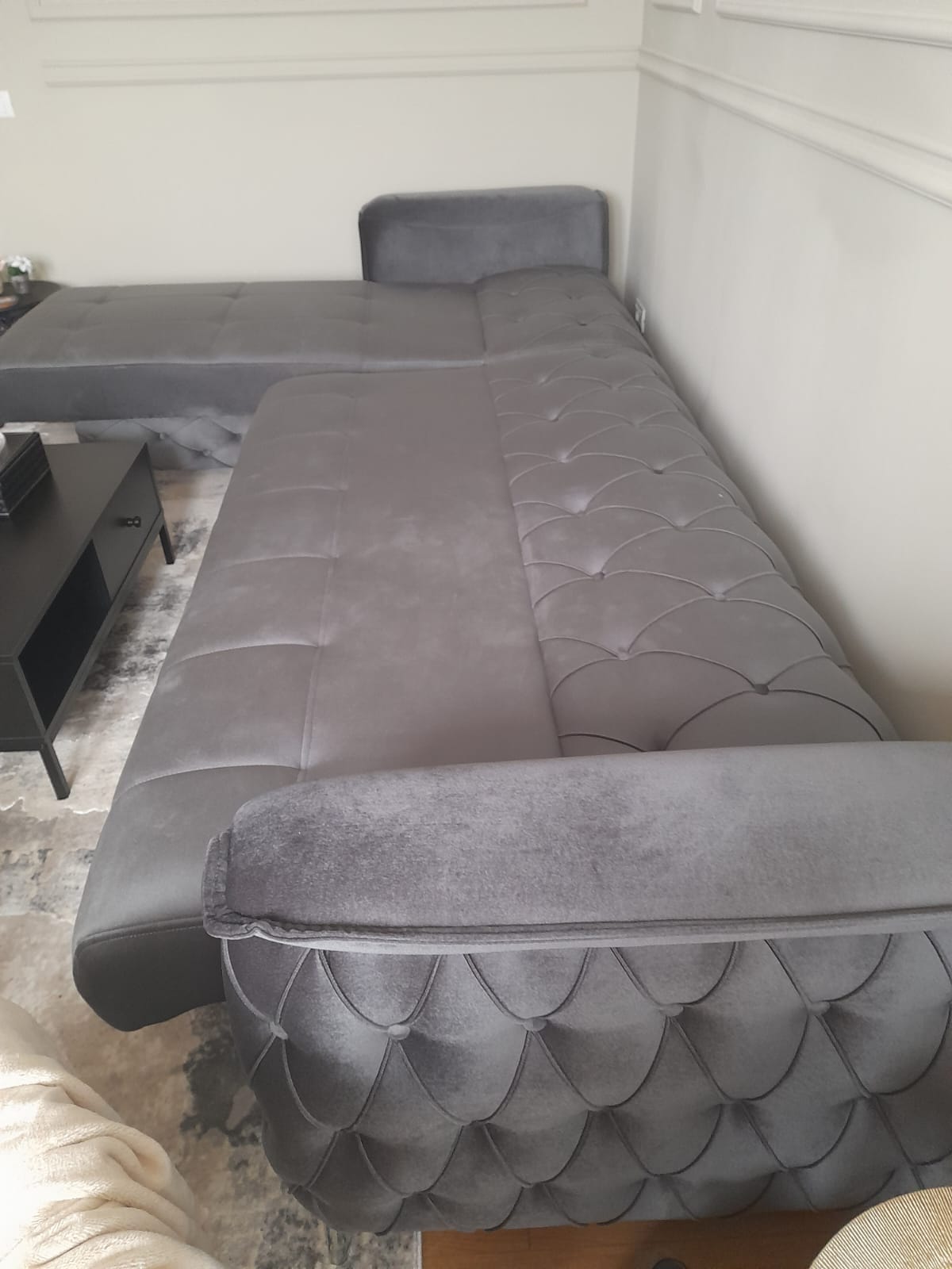Coltarul se compune din modulul de colt si o zona de trei locuri care se extinde si formeaza o suprafata de dormit confortabila. Prin extindere, se ofera accesul catre o lada pentru pastrarea lenjeriei care este suplimentata de inca o lada de depozitare sub sezlong.