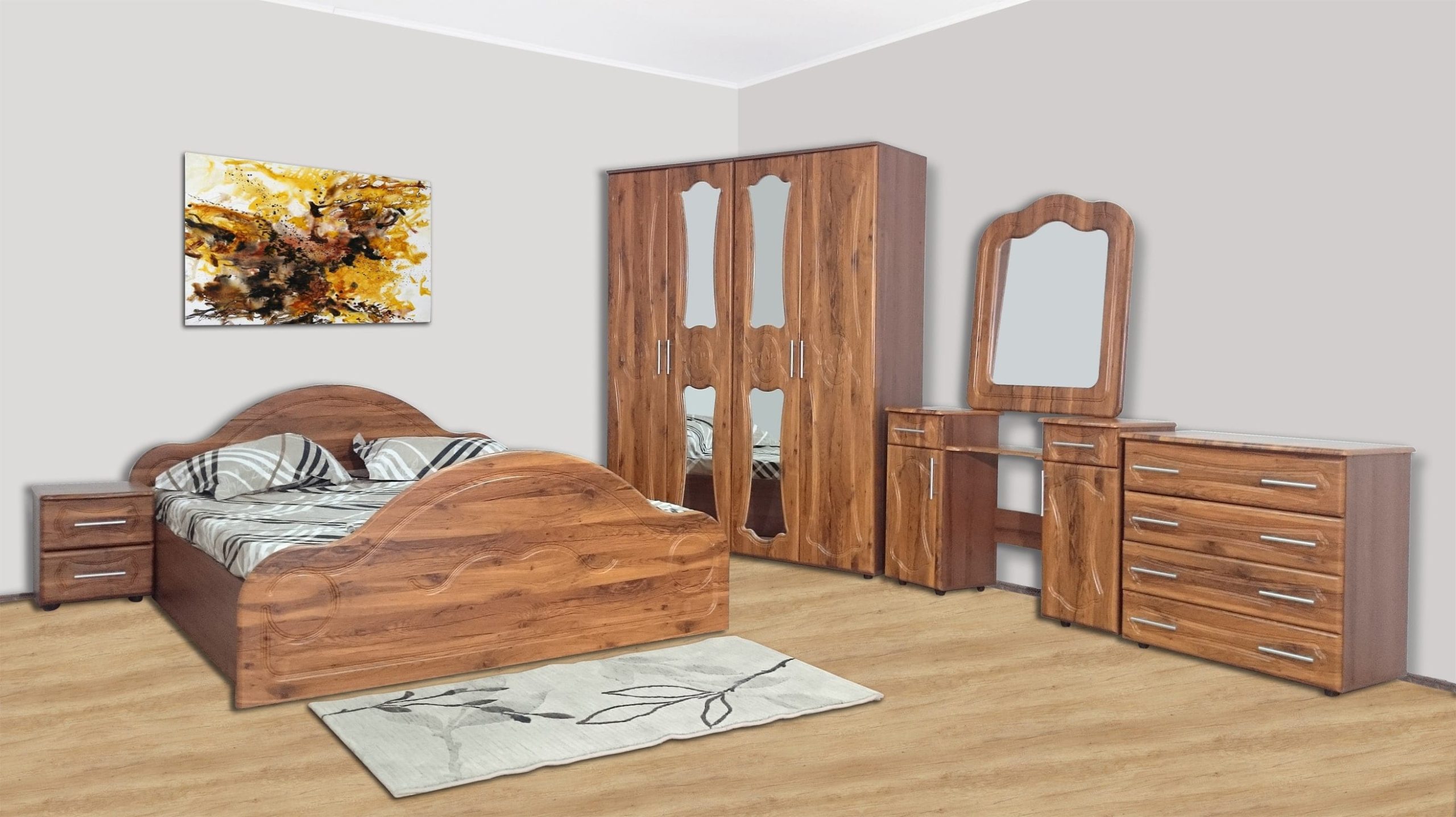 Prețul inițial a fost: 3.899,00 lei.3.599,00 leiPrețul curent este: 3.599,00 lei. TVA inclusSet dormitor Royal 250, Bej cu Dulap Sonoma