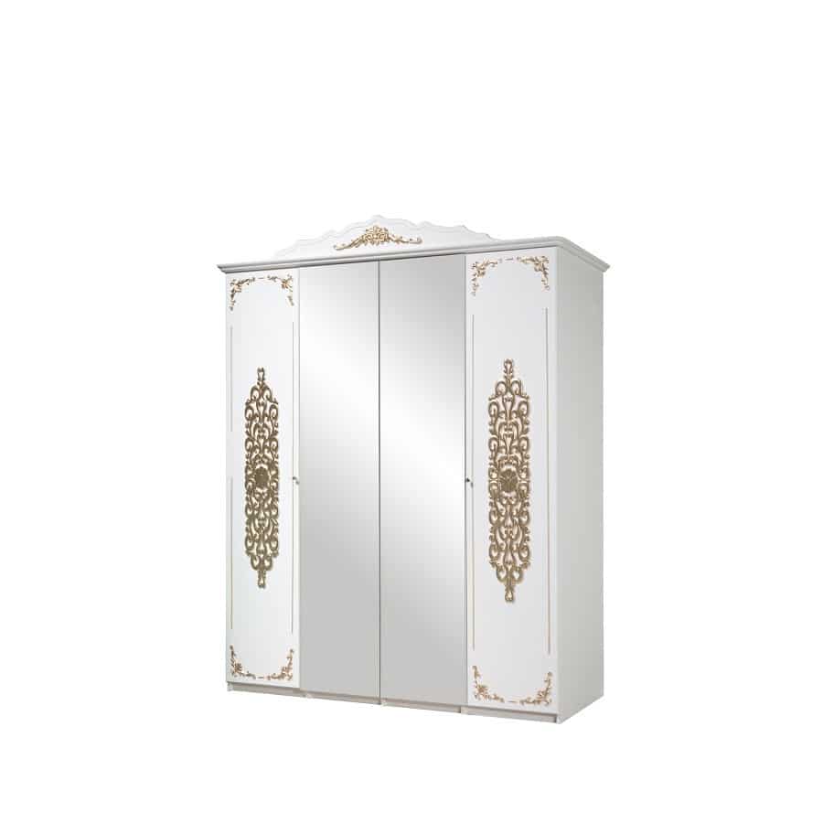 Dormitor Isku 4 usi, Alb & Auriu