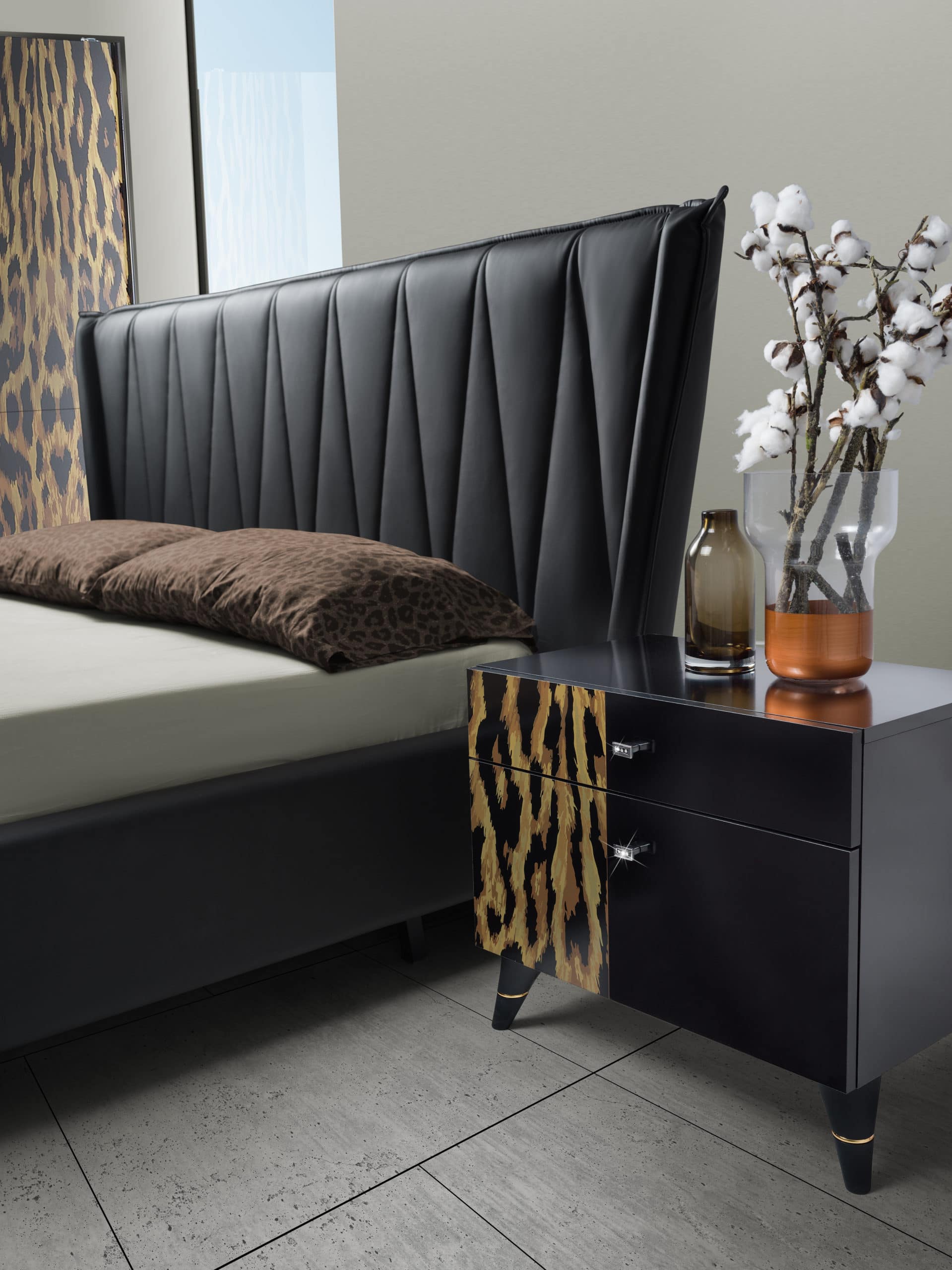 Dormitorul Savana este o piesa de mobilier potrivita pentru decorarea in stil modern a incaperilor de dimensiuni mari. Este realizat din PAL melaminat & MDF, cant ABS, prevazut cu multiple compartimente de depozitare. Patul este prevazut cu o tablie tapitata care accentueaza estetica moderna.