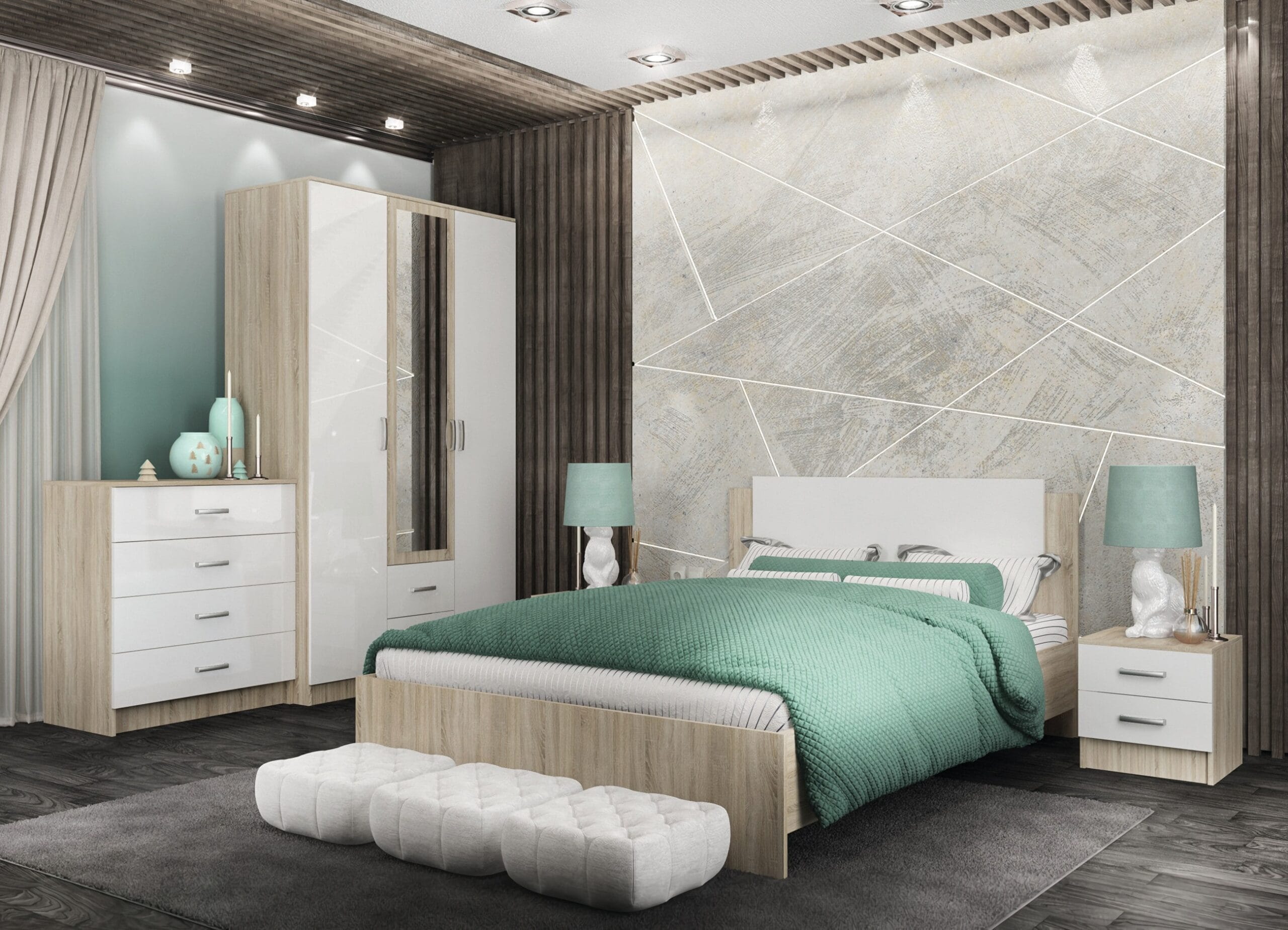 2.399,00 lei TVA inclusSet dormitor Royal 250, Bej cu Dulap Alb/Sonoma