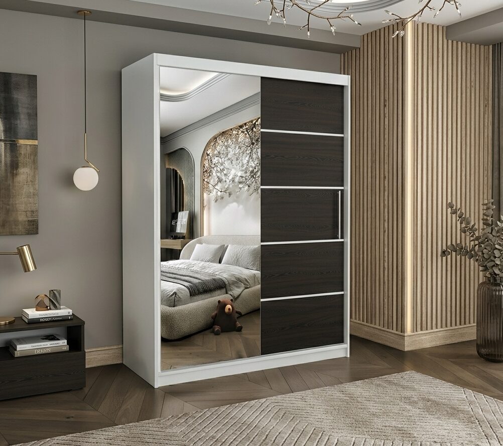 Dulap dressing Atlantic 2 usi cu oglinda, 150 cm, Alb/Wenge