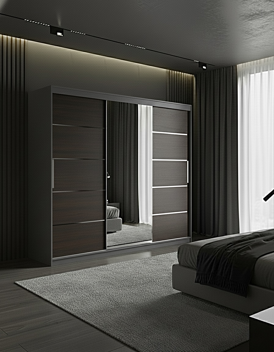 Dulap dressing Atlantic 3 usi, 250 cm, Gri/Wenge