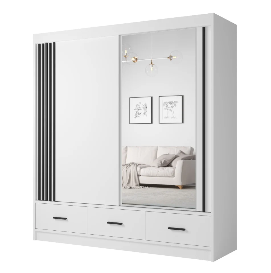 - Dulapul de haine usi glisante Atlantic, L: 200 x A: 60 x H: 215 cm este construit din pal melaminat si este prevazut cu oglinda mare pe una dintre usi