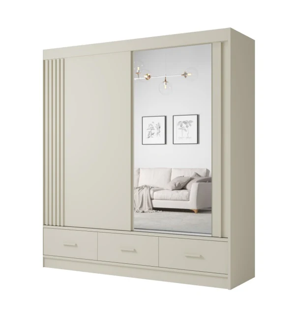 - Dulapul de haine usi glisante Atlantic, L: 200 x A: 60 x H: 215 cm este construit din pal melaminat si este prevazut cu oglinda mare pe una dintre usi