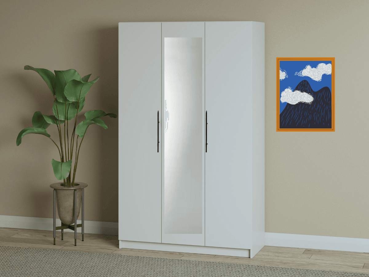 Dulap Iris 3 usi cu oglinda, 120 cm, Alb