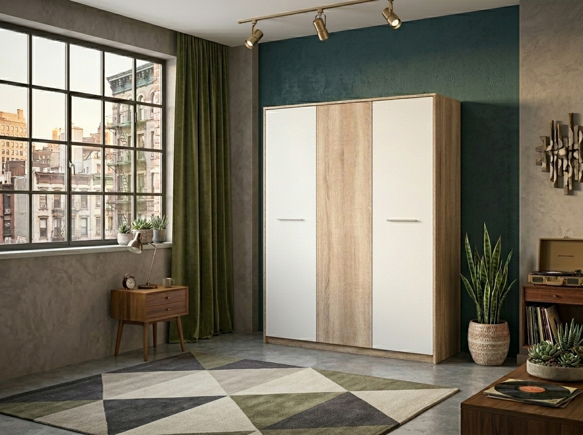 Dulap Practic 3 usi, 123 cm, Sonoma