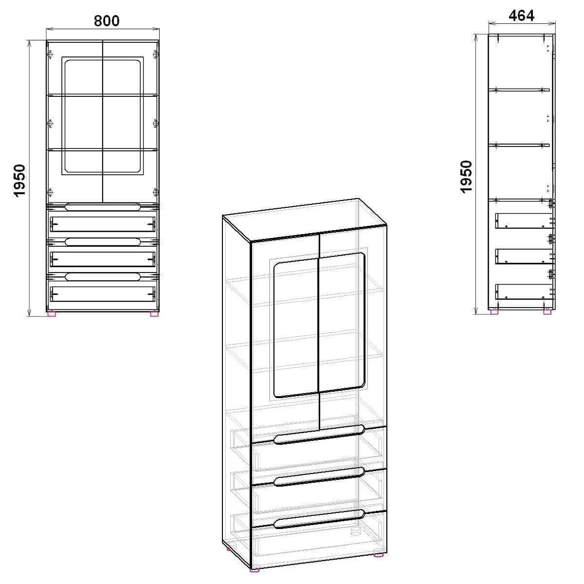 - Lungime 80 x Adancime 46 x Inaltime 195 cm