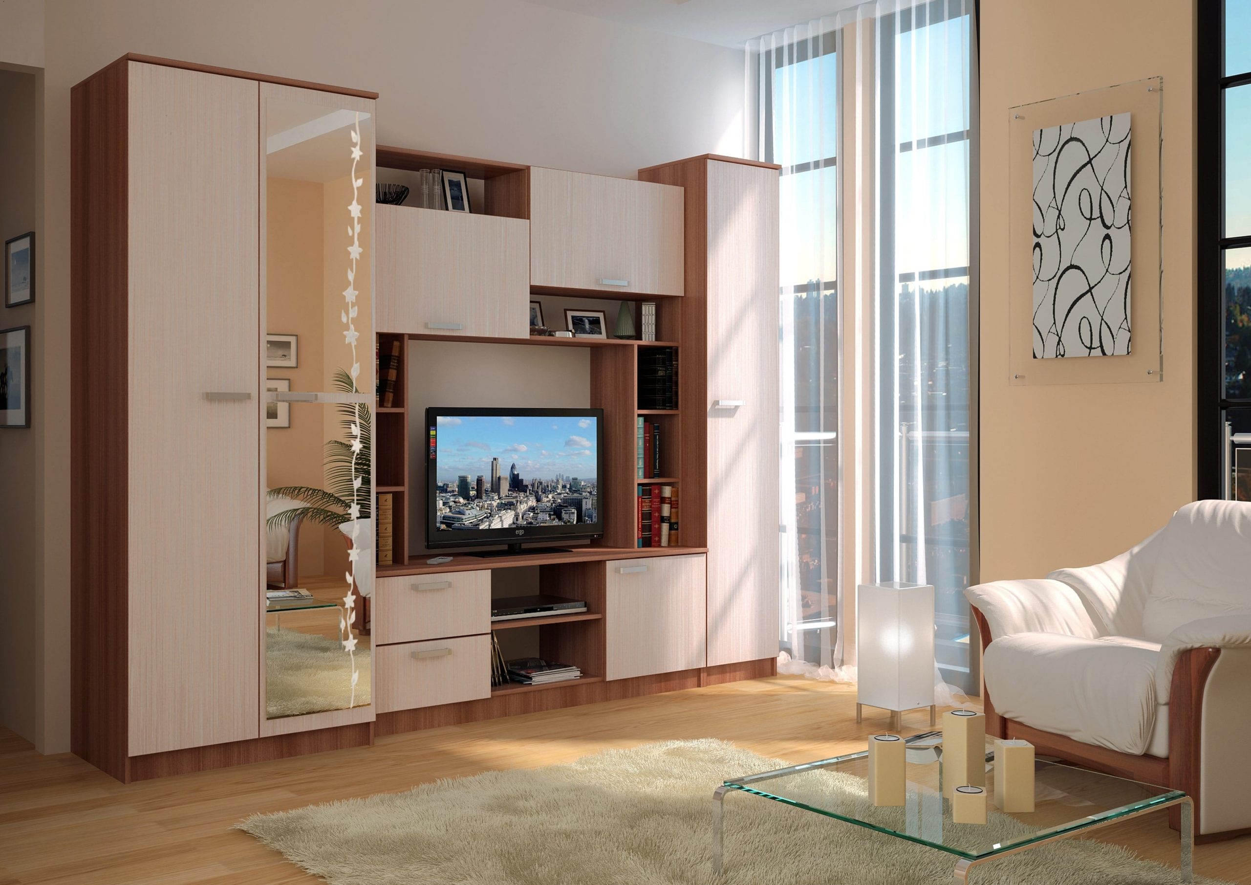 ● Front : Pal melaminat 16 mm & Oglinda cu model