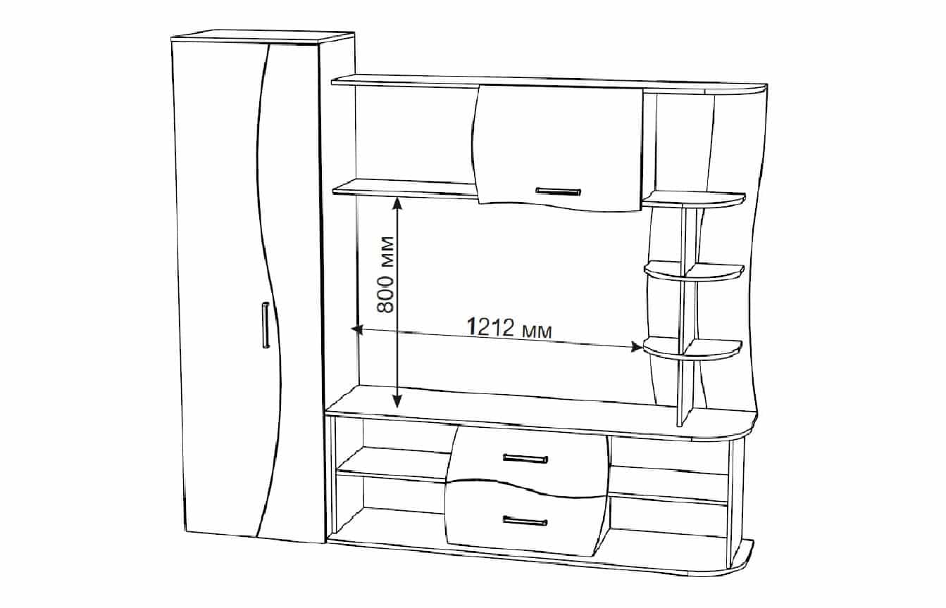 ● Corp Superior TV (Vitrina): Lungime 165 x Adancime 29 x Inaltime 119cm