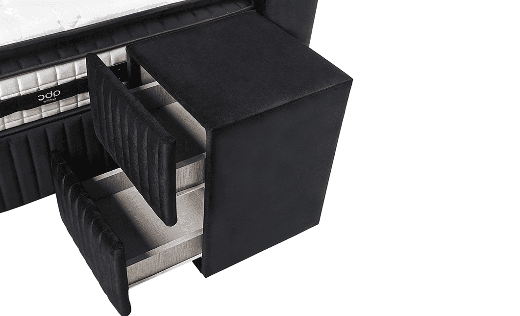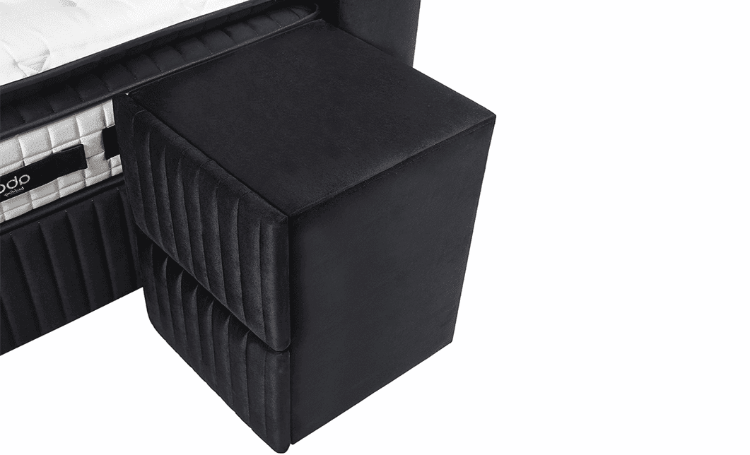 Pat tapitat cu lada de depozitare Santiago, Negru catifea – 160×200 cm