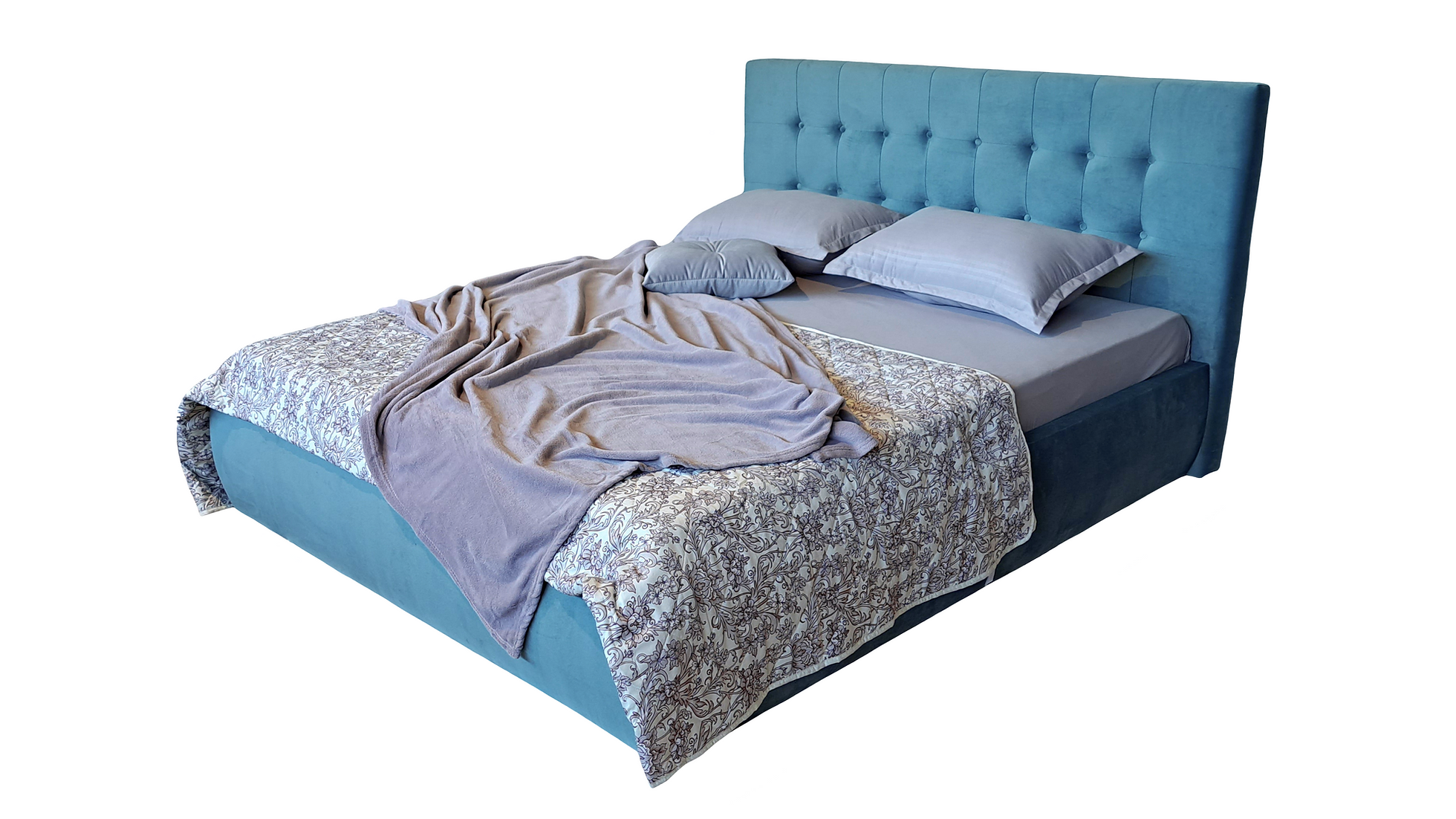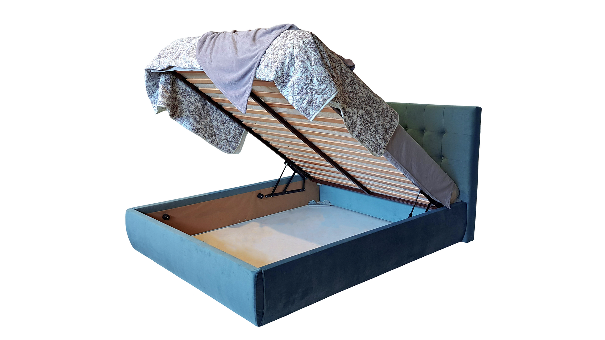 Prețul inițial a fost: 3.899,00 lei.3.599,00 leiPrețul curent este: 3.599,00 lei. TVA inclusPat tapitat cu lada de depozitare Santiago, Albastru catifea – 160×200 cm