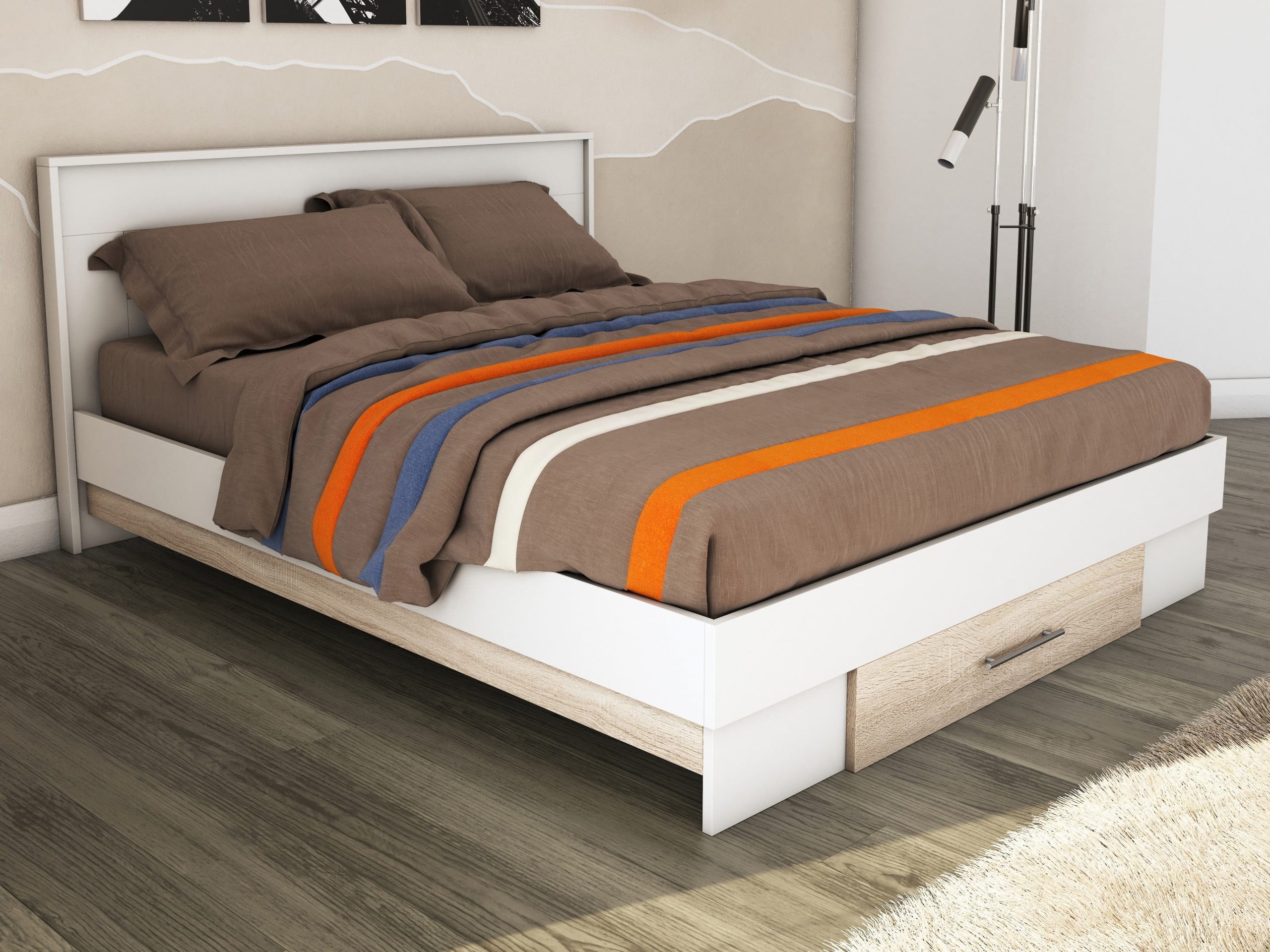 Pat cu sertar Beto, Alb/Sonoma, 160×200 cm