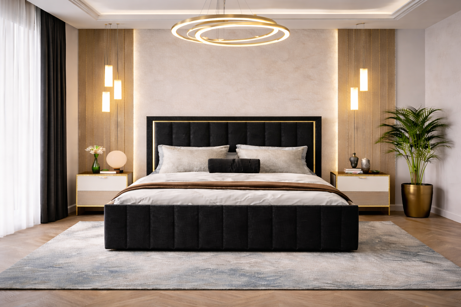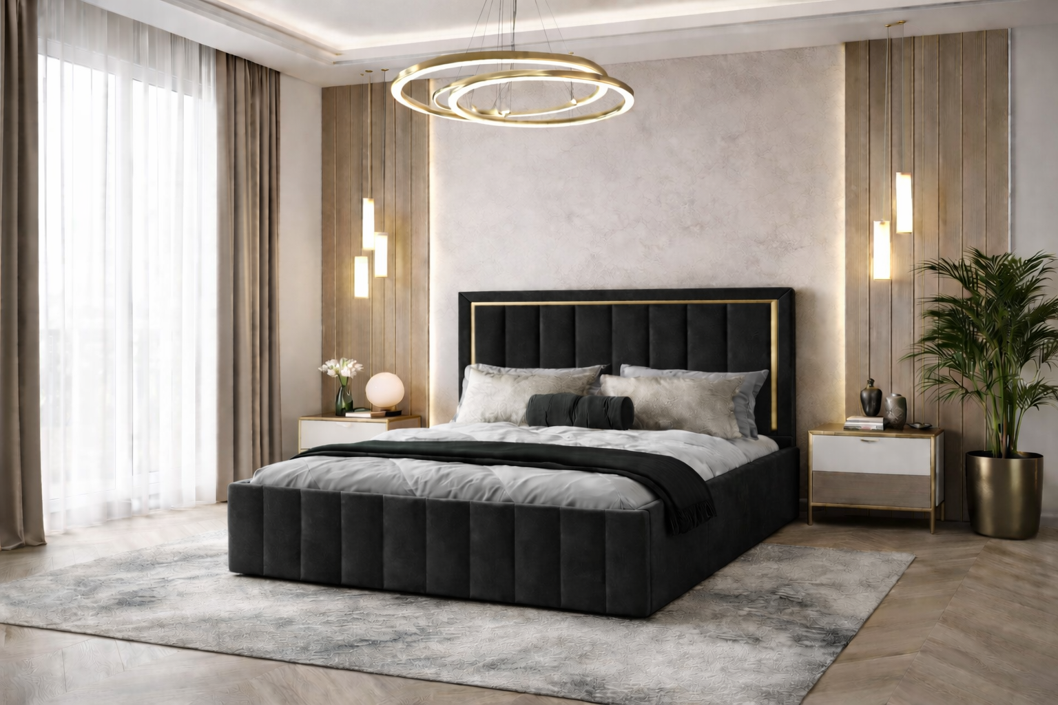 Pat tapitat Atena 140×200 cm, Negru