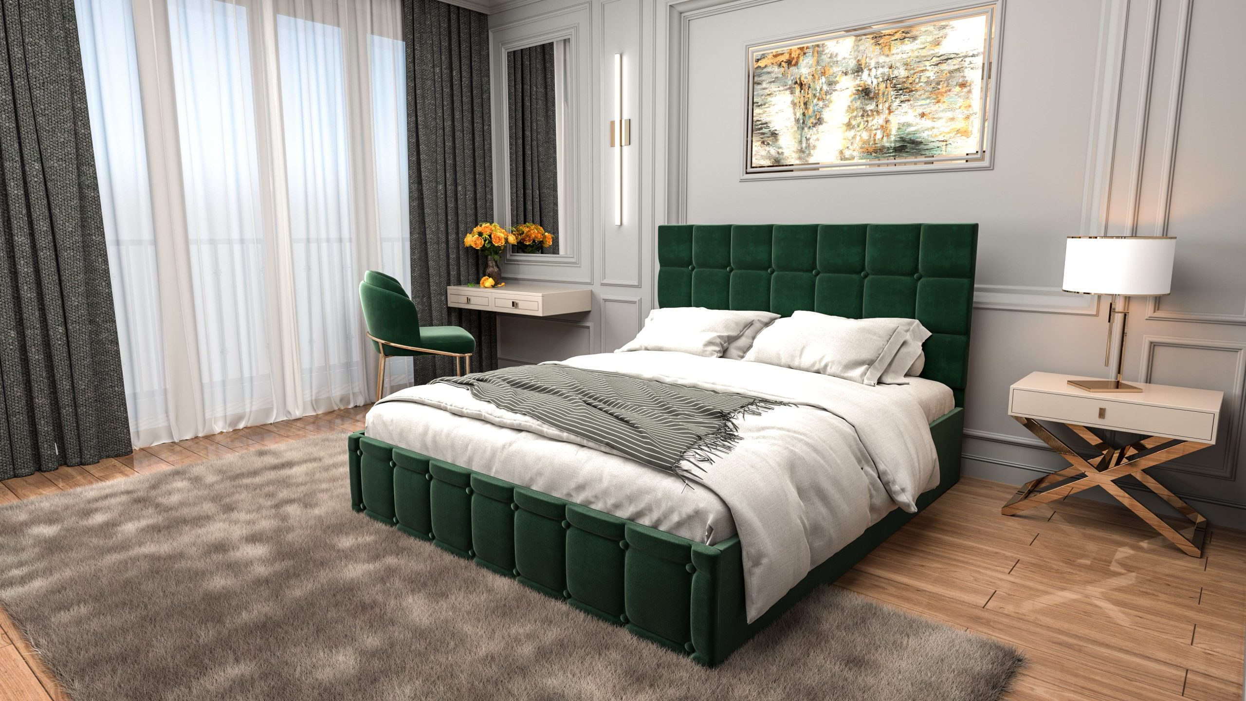 Pat tapitat cu lada de depozitare Royal, 160×200 cm, Verde