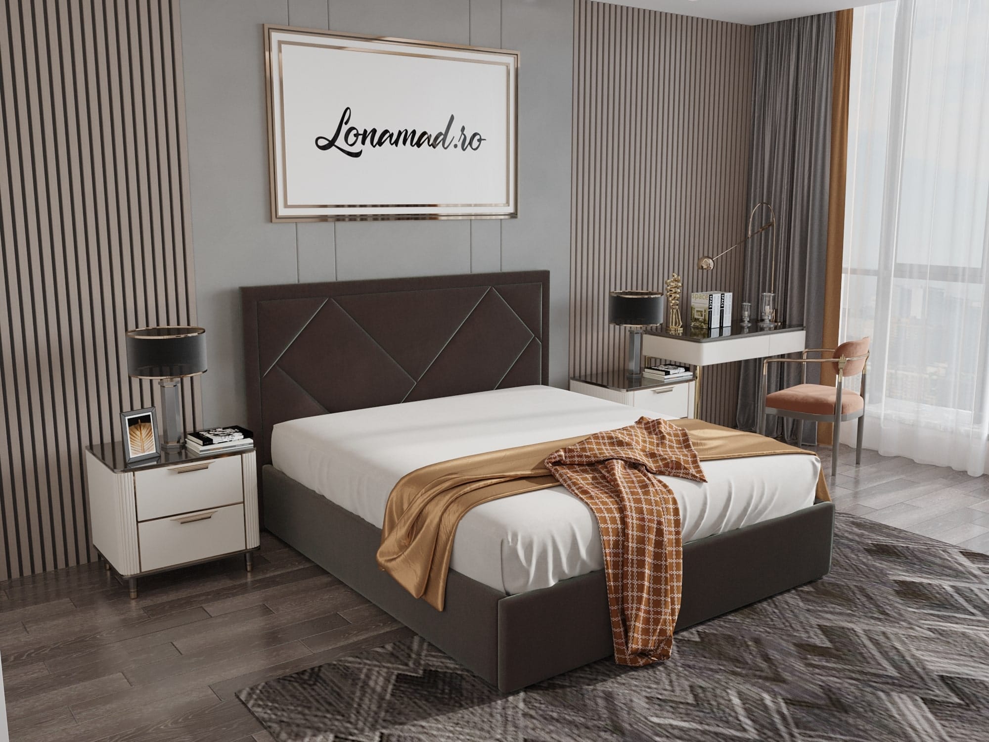 Patul tapitat Santiago este o piesa de mobilier eleganta care va schimba aspectul dormitorului.