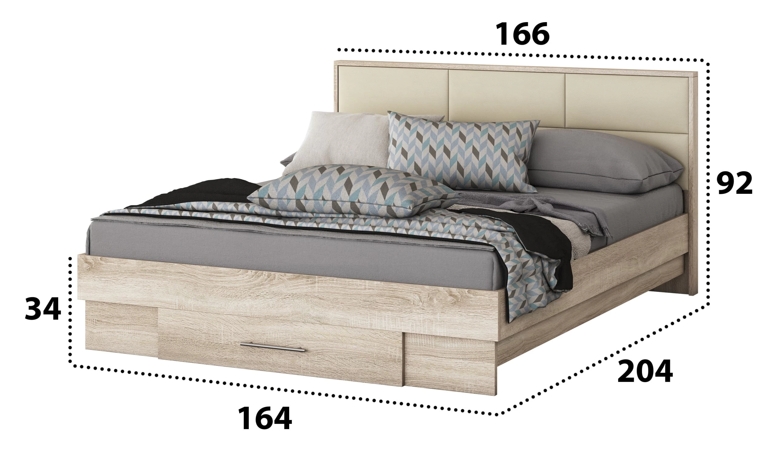 Dimensiuni pat (compatibil pentru saltea de 160×200 cm):