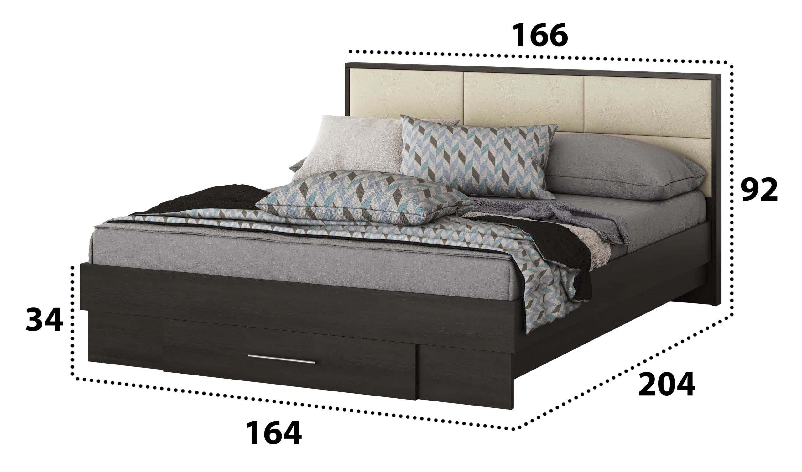 Dimensiuni pat (compatibil pentru saltea de 160×200 cm):