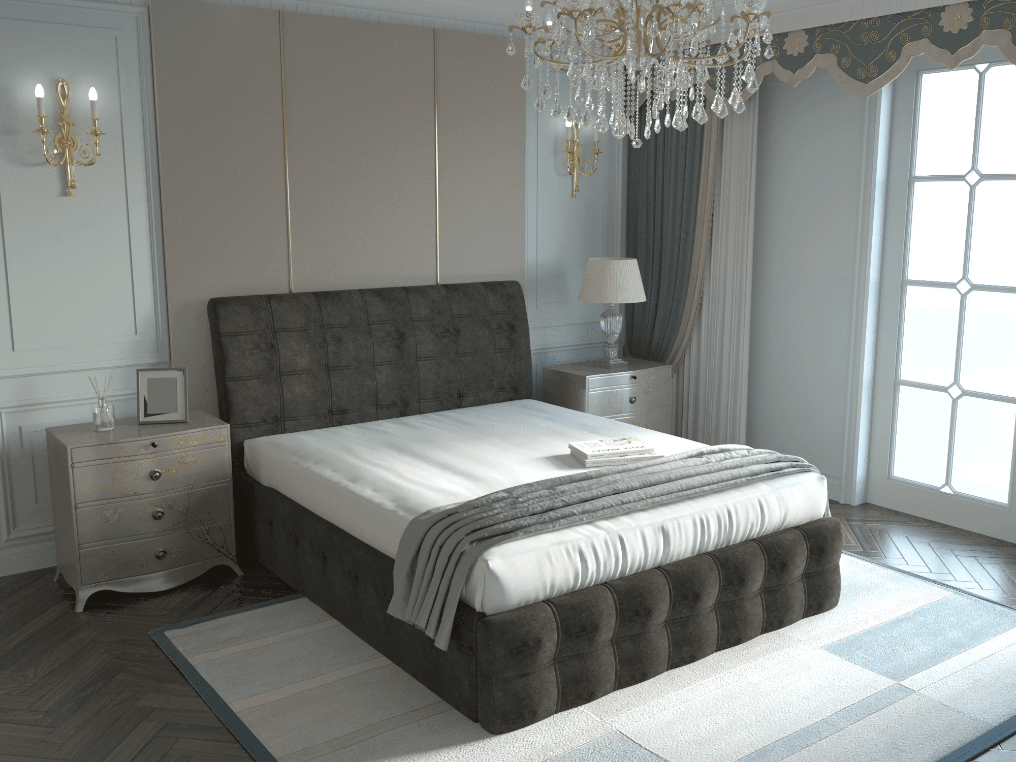 Pat tapitat Ela, 160×200 cm, Gri