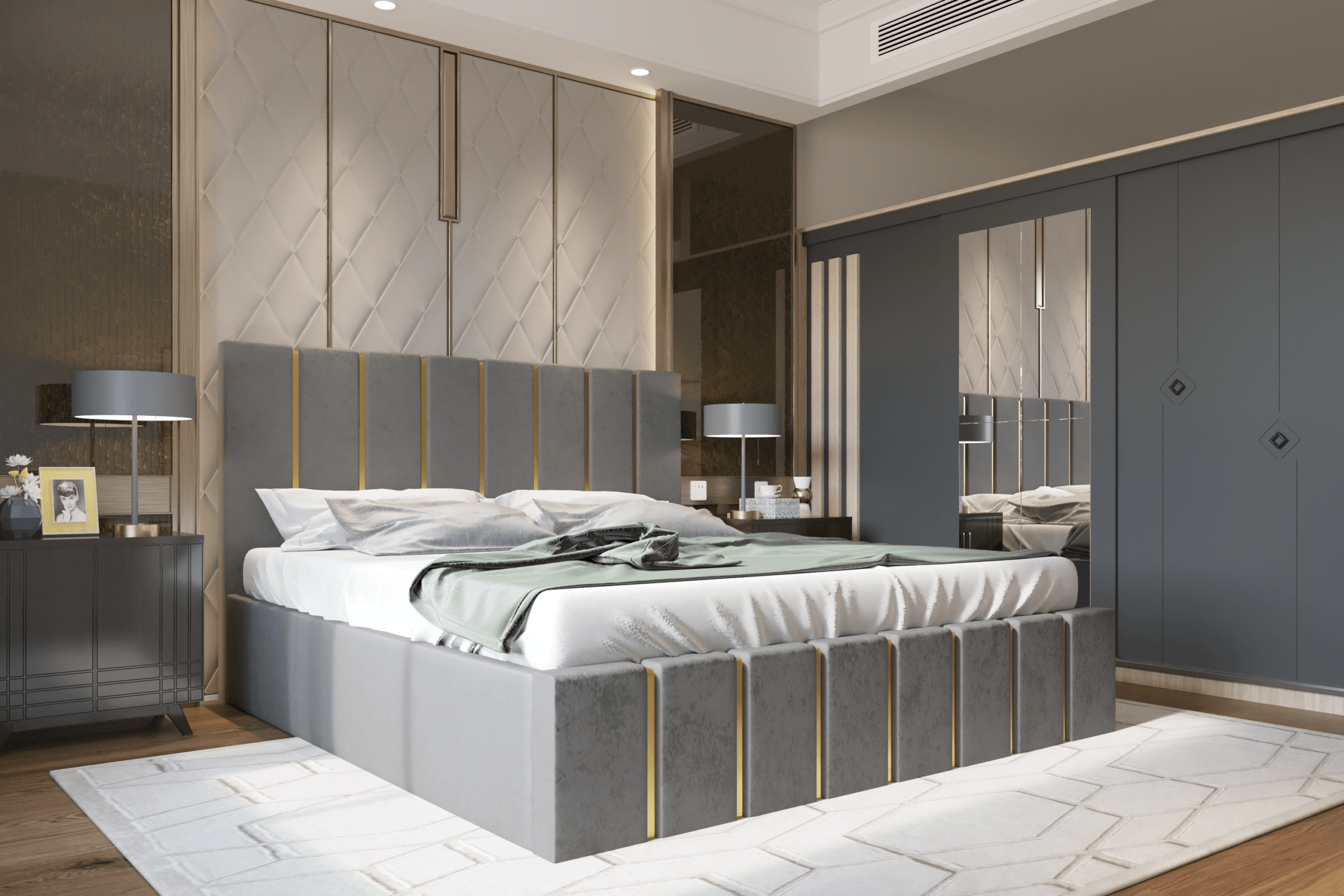 Patul tapitat Hugo este o piesa de mobilier eleganta care va schimba aspectul dormitorului.