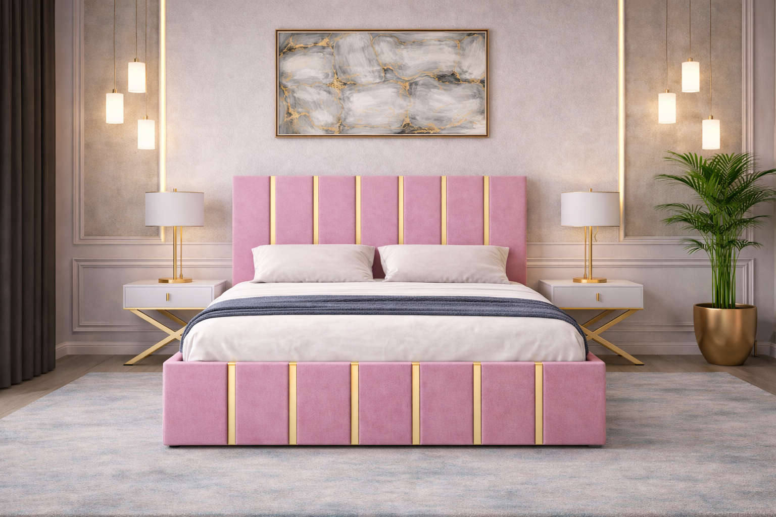 Pat tapitat Hugo 160×200 cm, Roz