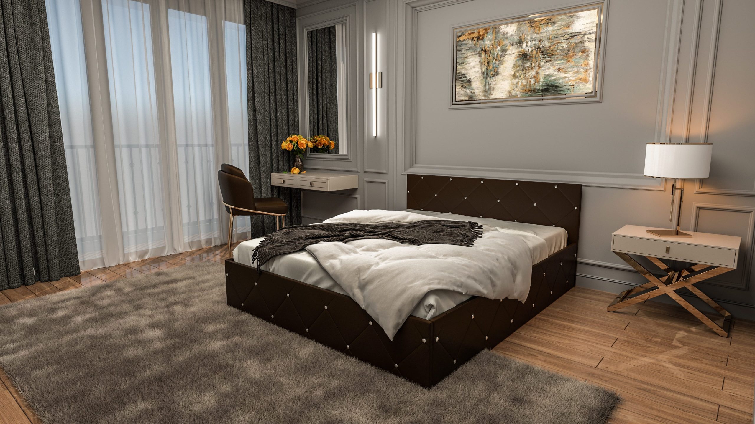 Patul tapitat Marubi este o piesa de mobilier eleganta care va schimba aspectul dormitorului.