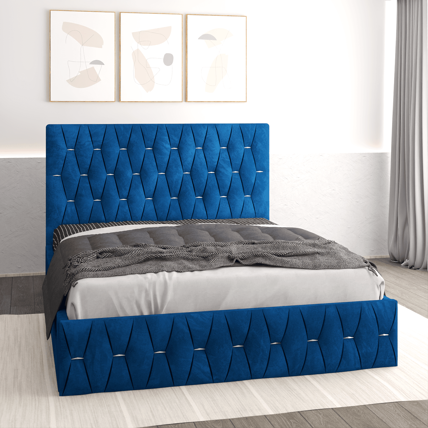 Pat tapitat Nova 160×200 cm, Albastru