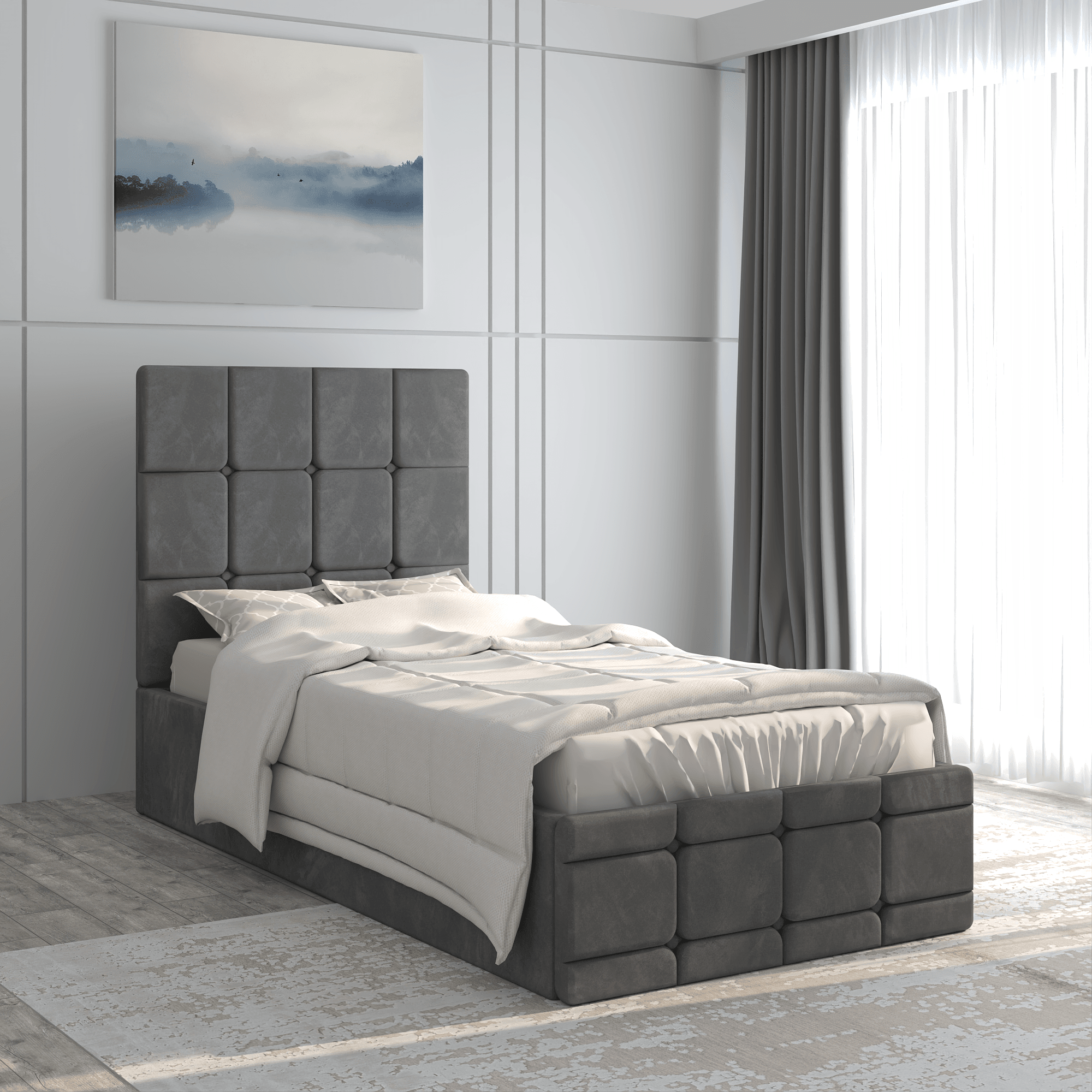 Pat tapitat Royal, 90×200 cm, Gri