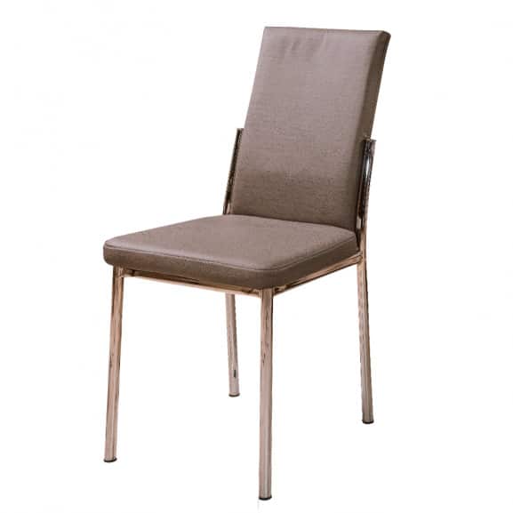 Sezutul si spatarul sunt realizate din piele ecologica de calitate, rezistenta in timp si usor de intretinut. Picioarele din crom vopsite in camp electrostatic sunt rezistente la zgariere. In partea inferioara sunt prevazute cu dopuri anti-aderenta care preving zgomotele neplacute si zgarierea podelei.