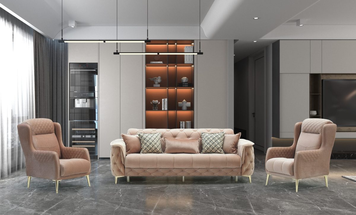 Set canapea cu 2 fotolii Cordoba face parte dintr-un set de living care contine canapea, fotolii, un coltar mini si un coltar mare. Colectia Cordoba este solutia perfecta pentru amenajarea unui living elegant datorita liniei de design inspirata de stilului chester armonizata cu tendintele contemporane in materie de design si amenajari. Combinatia perfecta dintre forma si structura bratelor, butonii si cusaturile decorative, materialele de tapiterie de lux, picioarele si culoarea speciala asigura integritatea unui mobilier superb pe o linie masiva si deosebita.