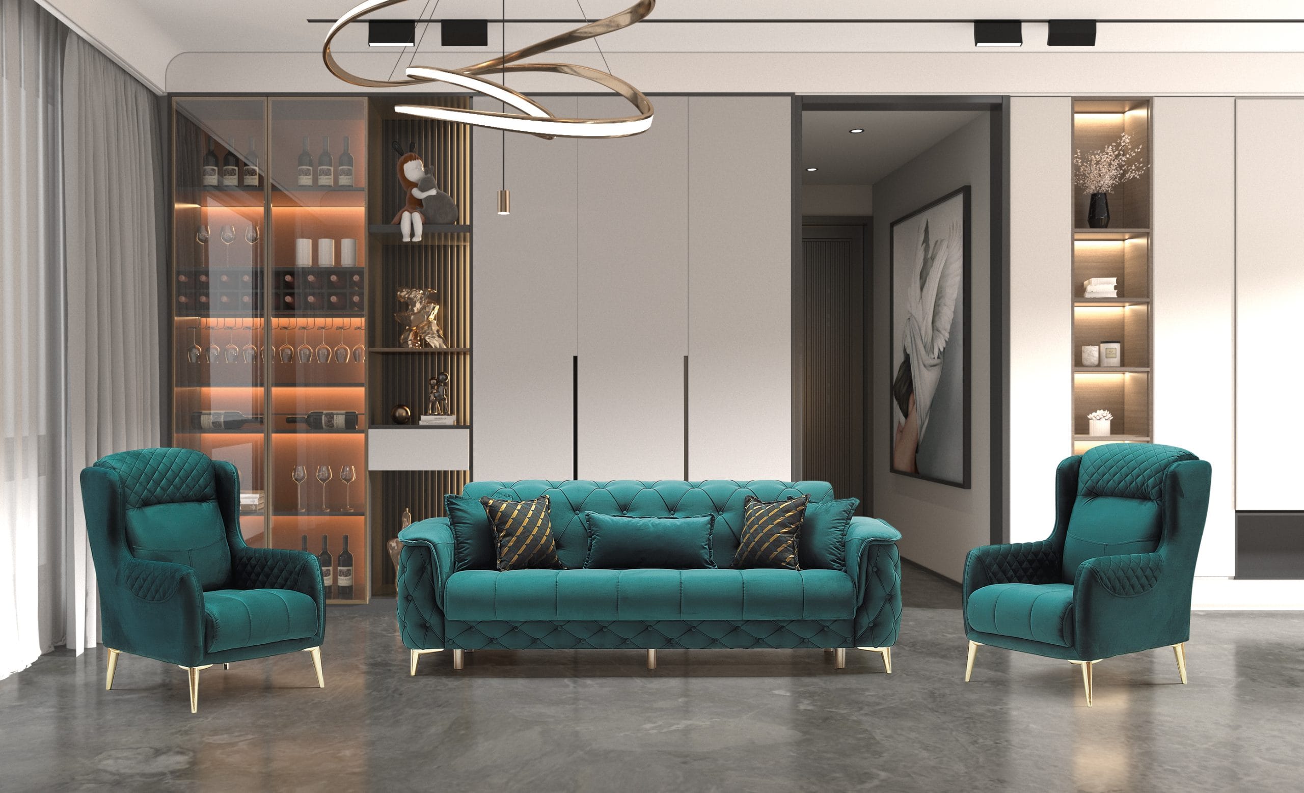 Set canapea cu 2 fotolii Cordoba, Verde