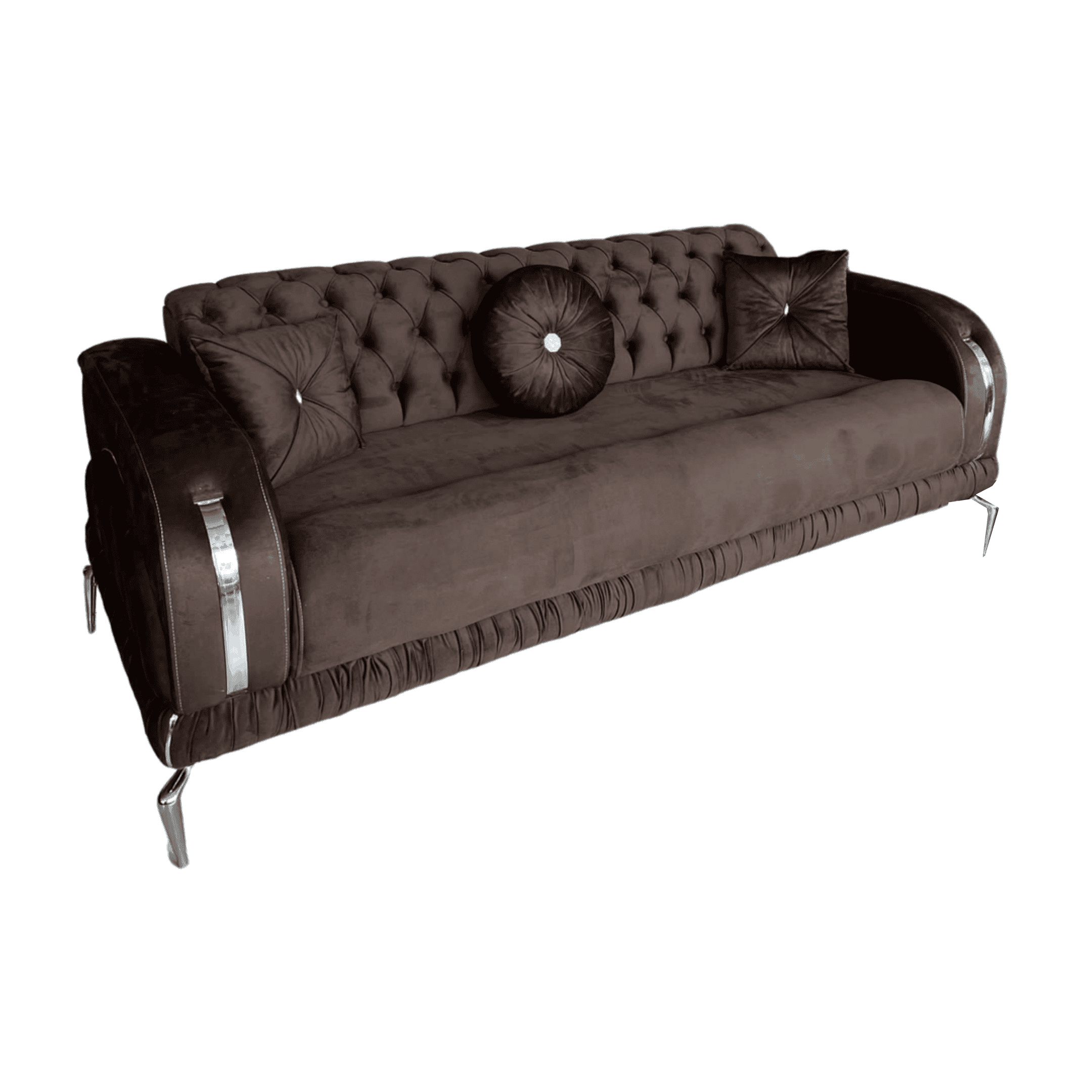 Set canapea cu 2 fotolii Line, Maro