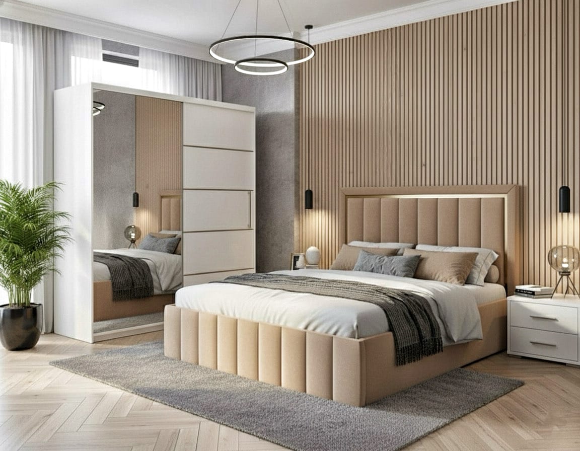 Setul de dormitor Atena este o piesa de mobilier moderna care va schimba aspectul dormitorului.