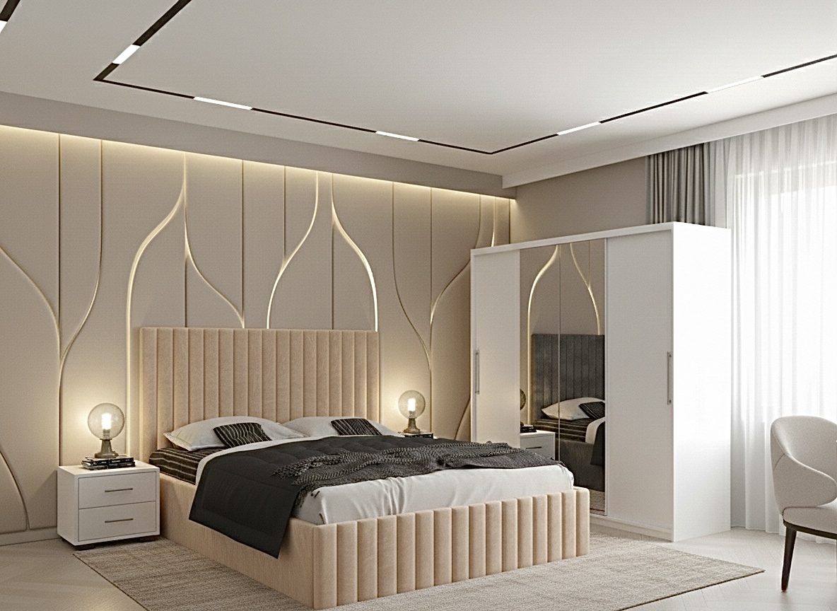 Set dormitor Cairo Bej cu Dulap Londra 200 Alb