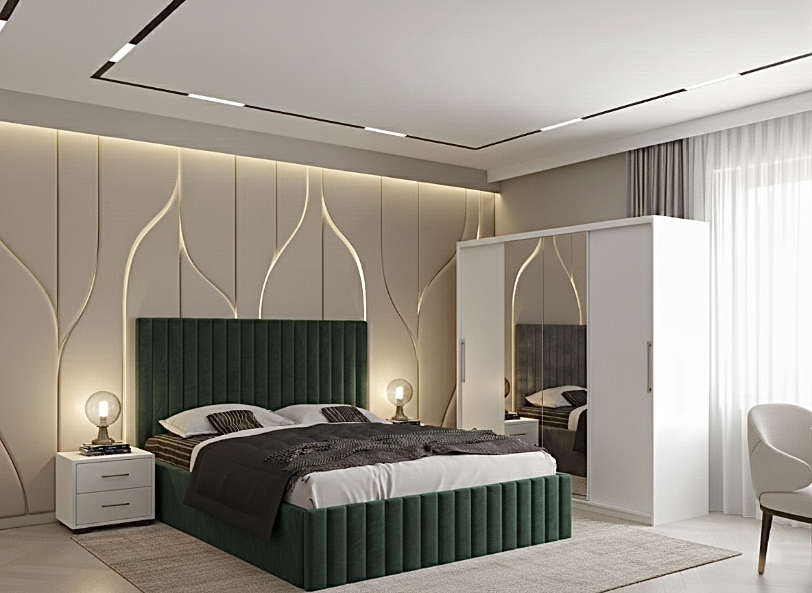 Set dormitor Cairo Verde cu Dulap Londra 200 Alb