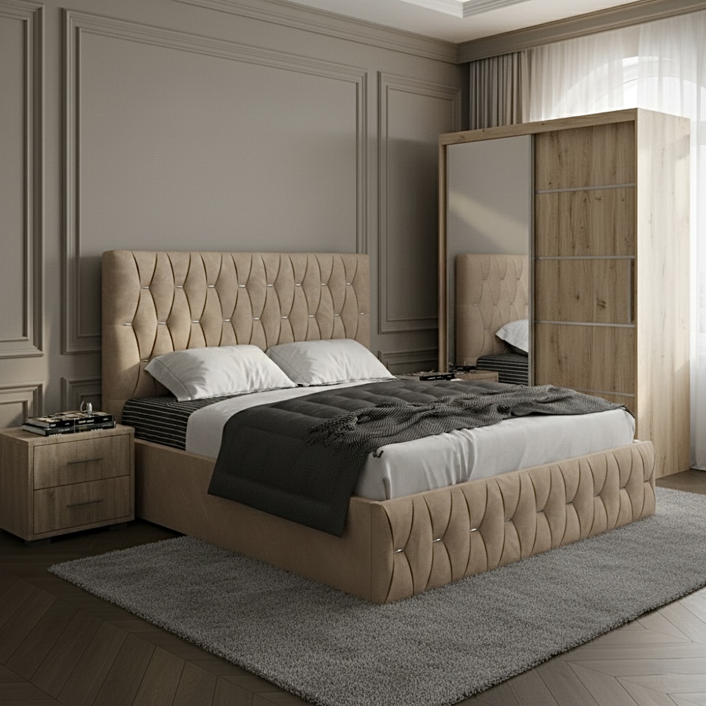 Set dormitor Nova Bej cu Dulap Atlantic 150 Sonoma