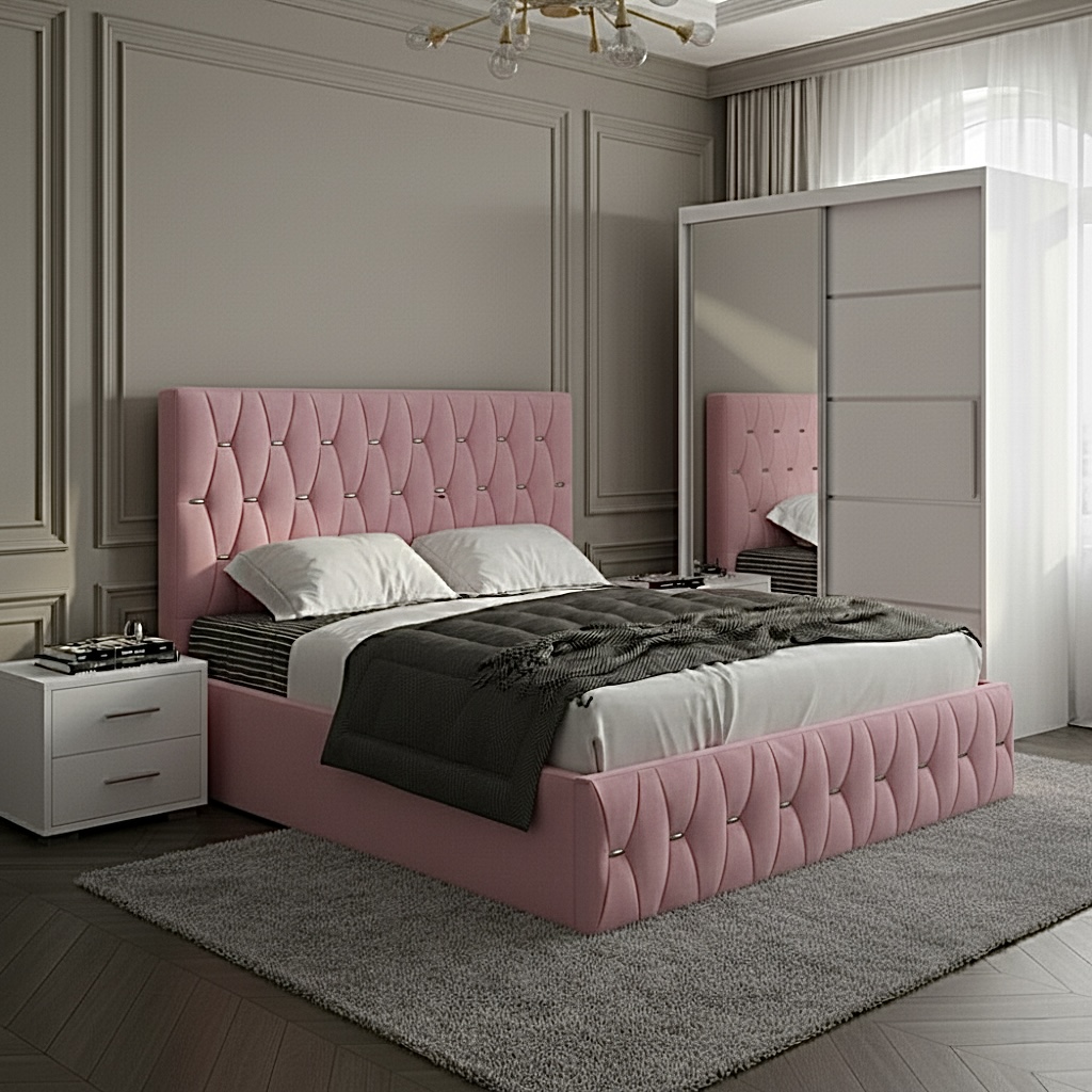 - pat tapitat cu stofa catifelata (140x200 cm, 160x200 cm sau 180x200 cm - contracost)