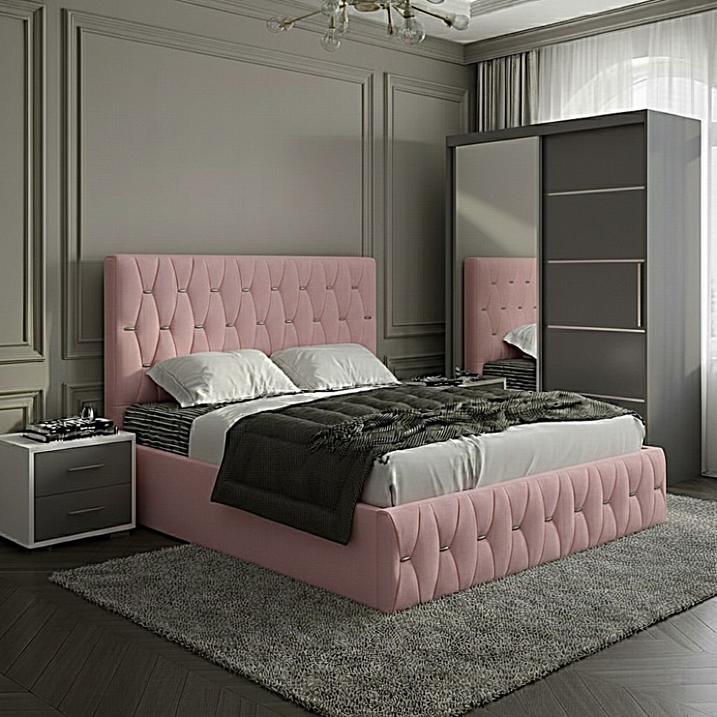 - pat tapitat cu stofa catifelata (140x200 cm, 160x200 cm sau 180x200 cm - contracost)