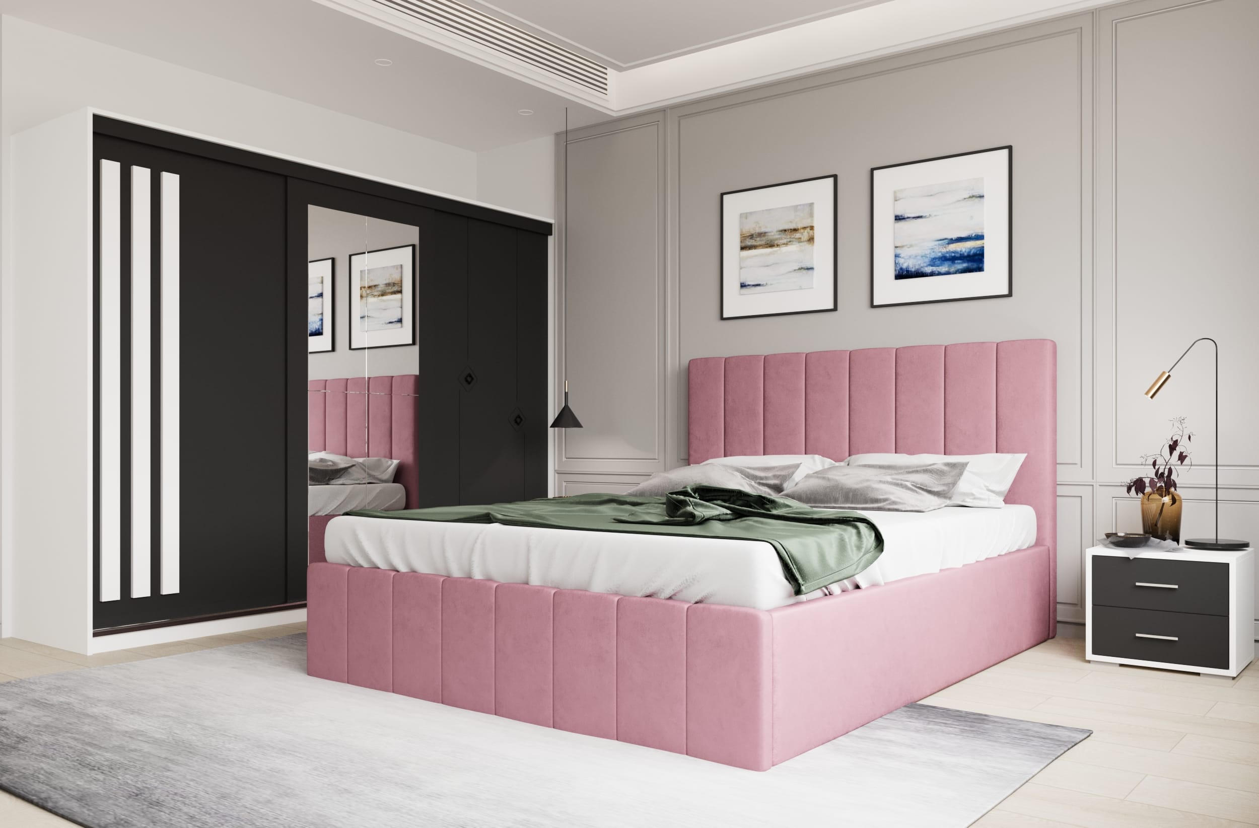 Set dormitor Prado Roz cu dulap Paris Alb/Gri