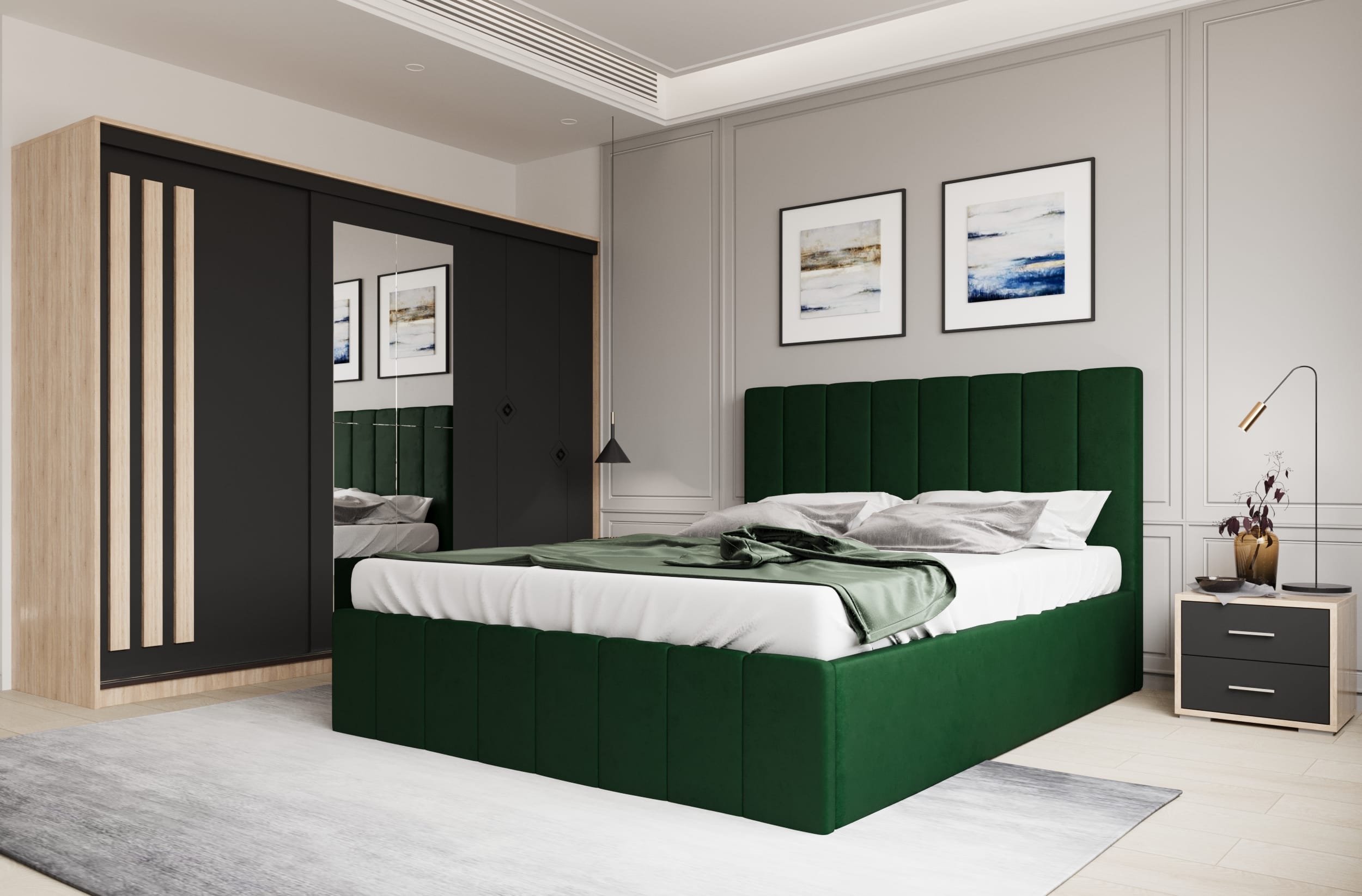Set dormitor Prado Verde cu dulap Paris Sonoma/Gri
