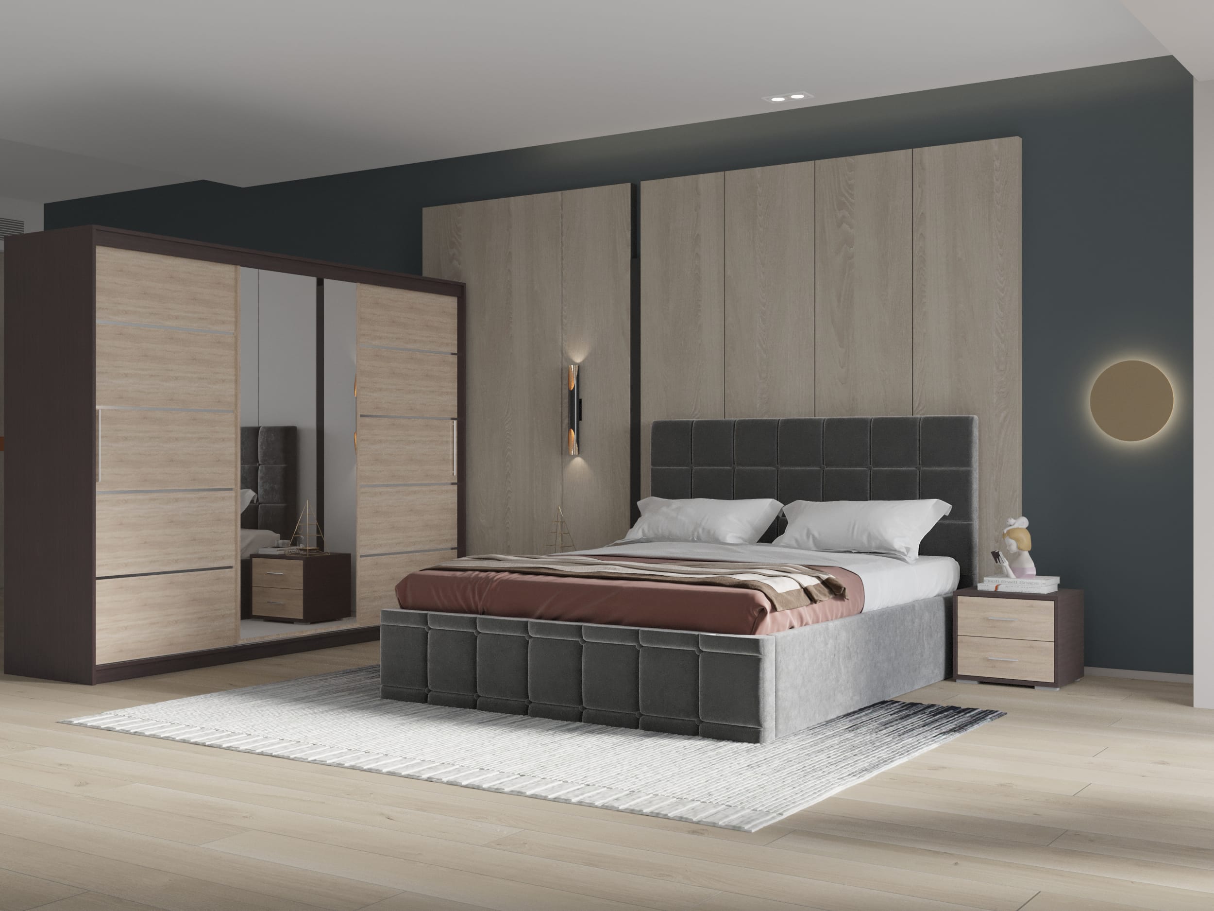 Set dormitor Royal 250, Gri cu Dulap Wenge/Sonoma