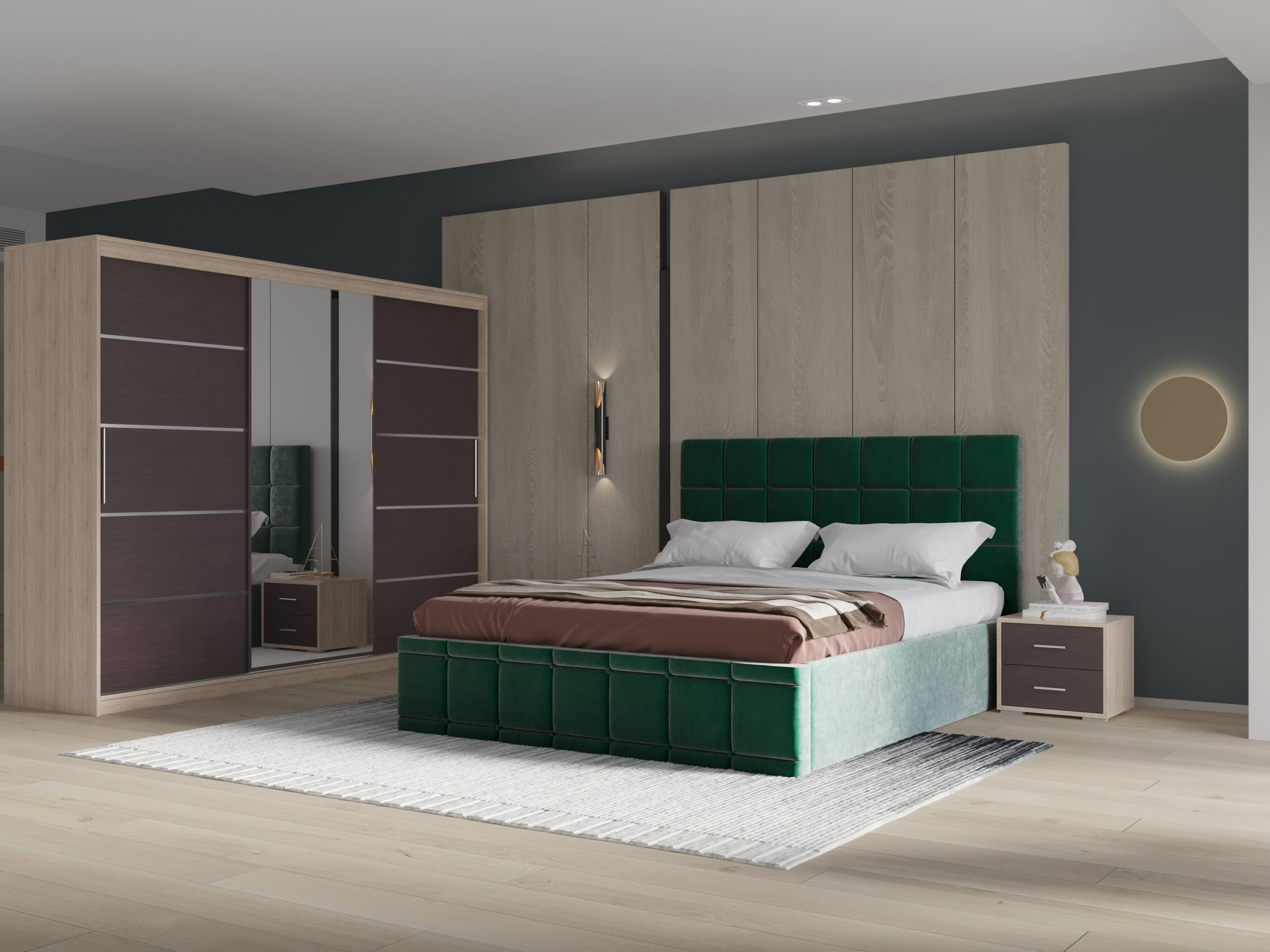 Set dormitor Royal 250, Verde cu Dulap Sonoma/Wenge