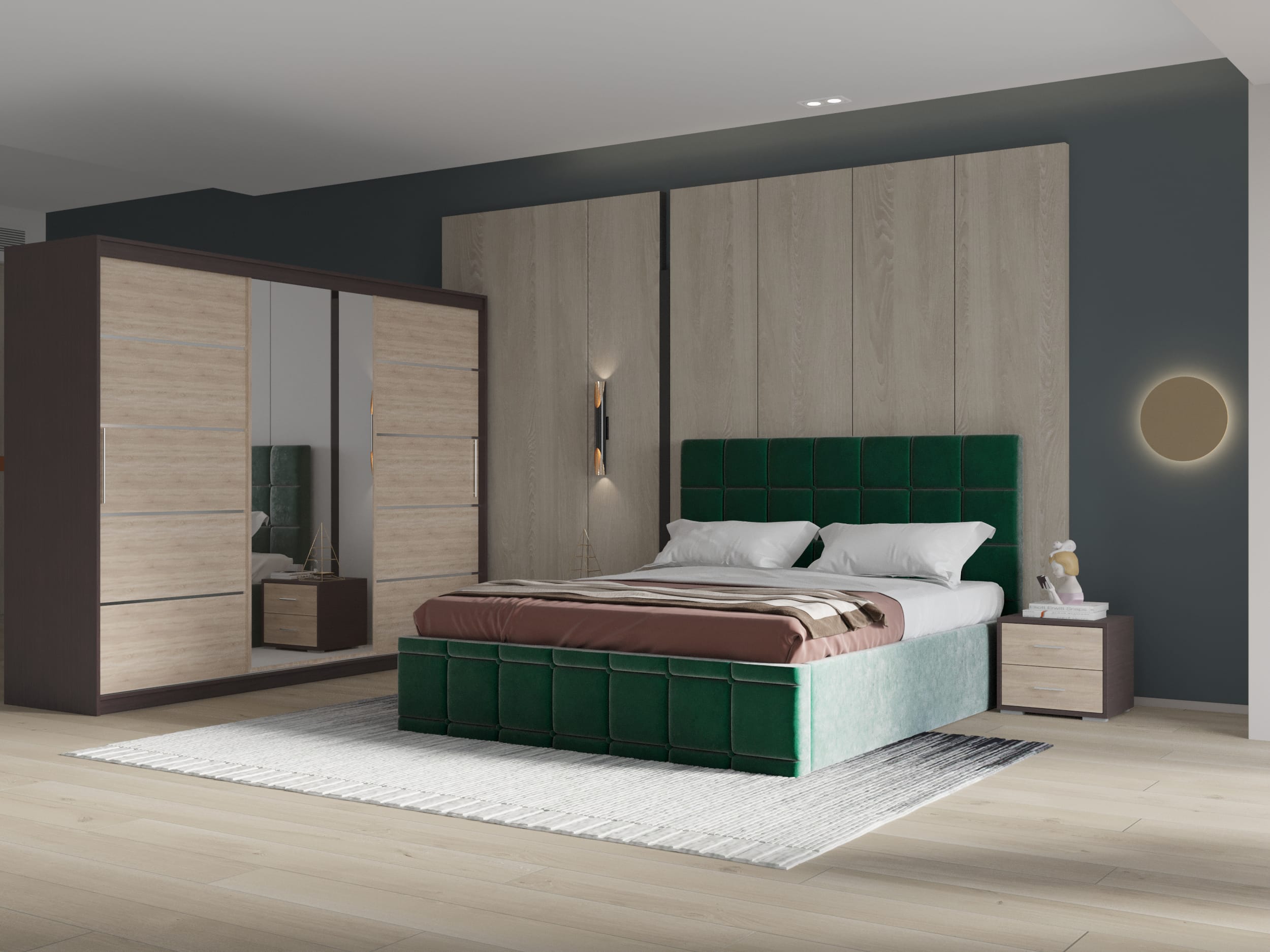 Set dormitor Royal 250, Verde cu Dulap Wenge/Sonoma