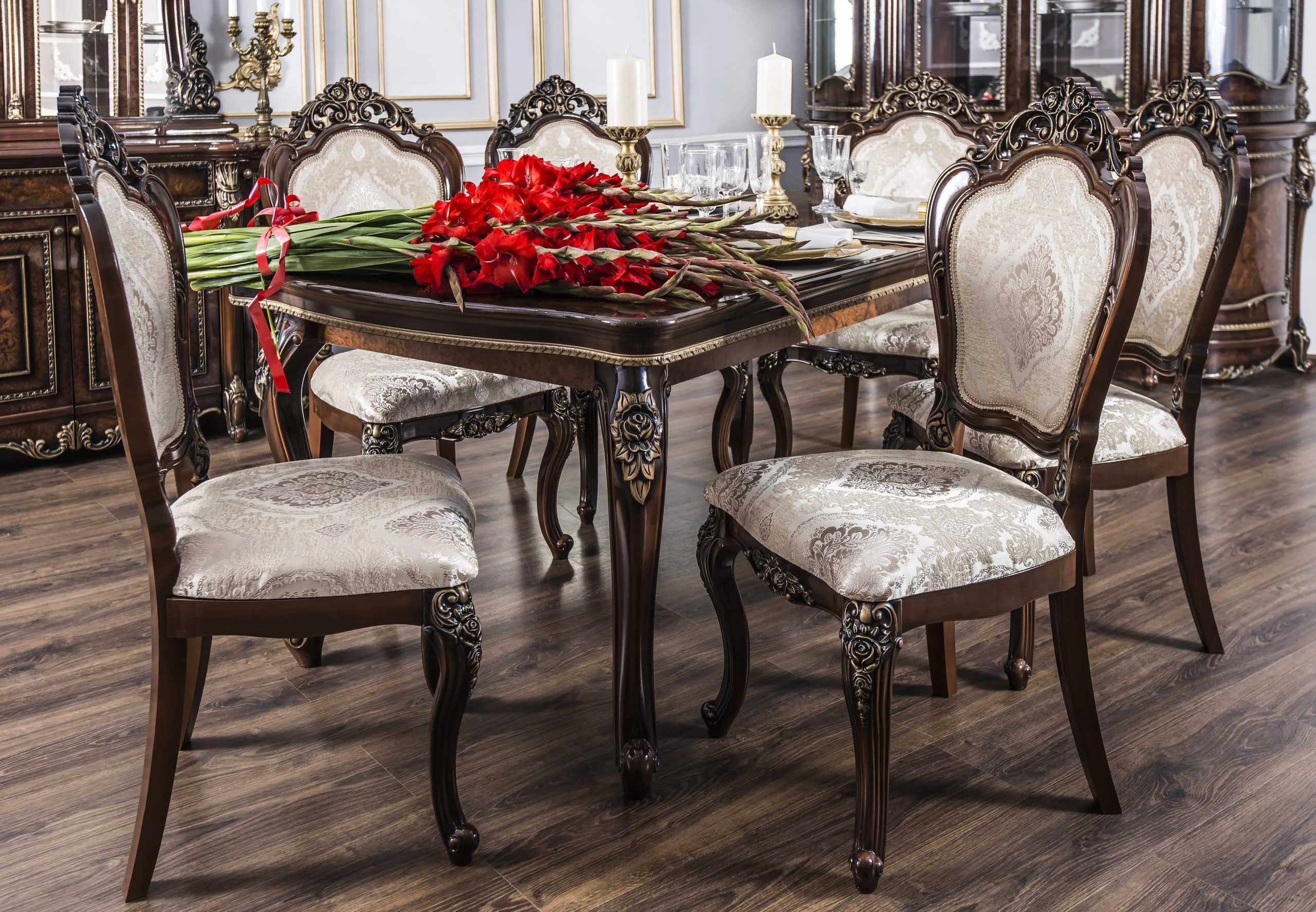 Set format din masa de lemn si 8 scaune tapitate, ideal pentru livingul sau bucataria dumneavoastra. Datorita materialului din care este confectionat, este o investitie de durata, avand rezistenta in timp. Cu un design ce nu se demodeaza usor, se integreaza usor in ambientul casei dumneavoastra. Scaunele sunt capitonate cu burete pe sezut si spatar, si apoi tapitate cu stofa, rezistenta in timp.