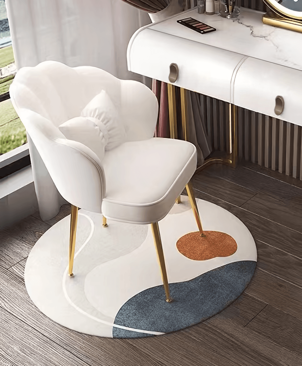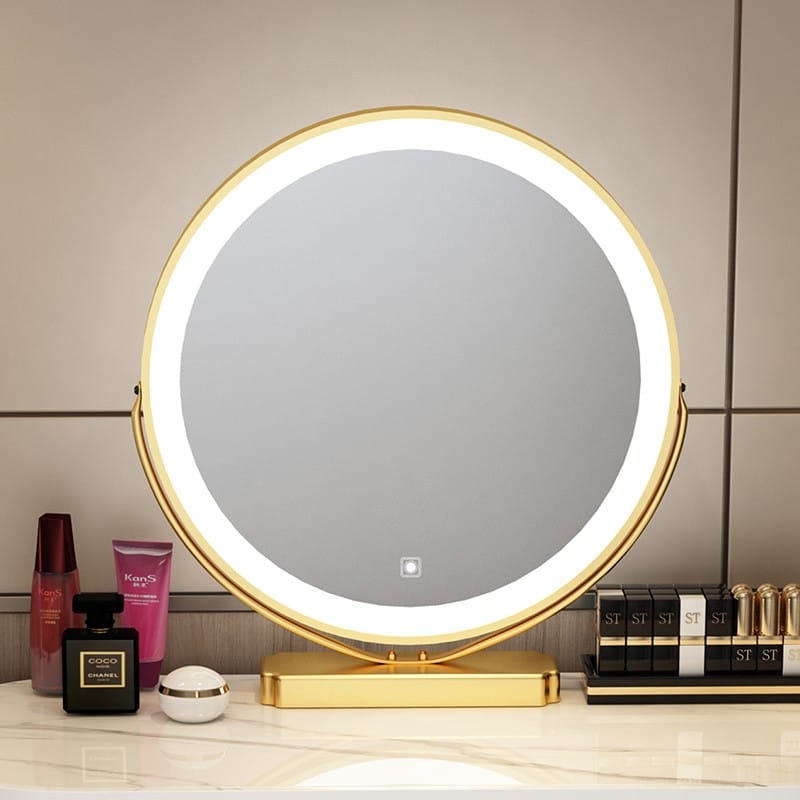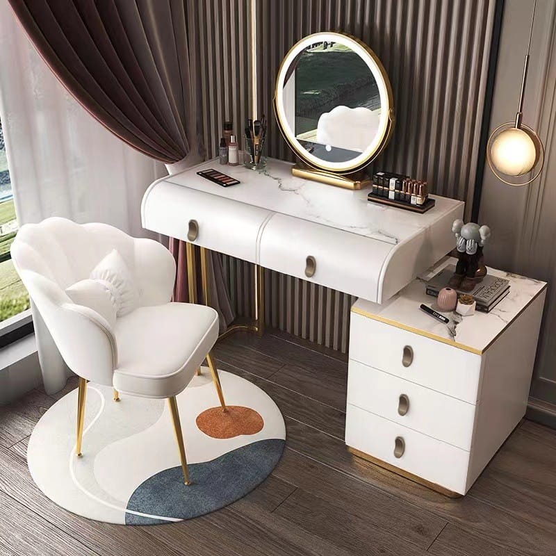 Setul include o masa de machiaj, o oglinda din sticla cu iluminare LED si un scaun tapitat cu catifea. Sertarele practice ofera un loc generos de depozitare pentru produsele de machiaj, parfumuri si multe altele. Mai multe de atat, picioarele din otel inoxidabil ii asigura un plus de stabilitate. Oglinda rotunda este finisata cu rama metalica si beneficiaza de iluminat printr-o banda led, reglabila pe 3 niveluri de lumina.